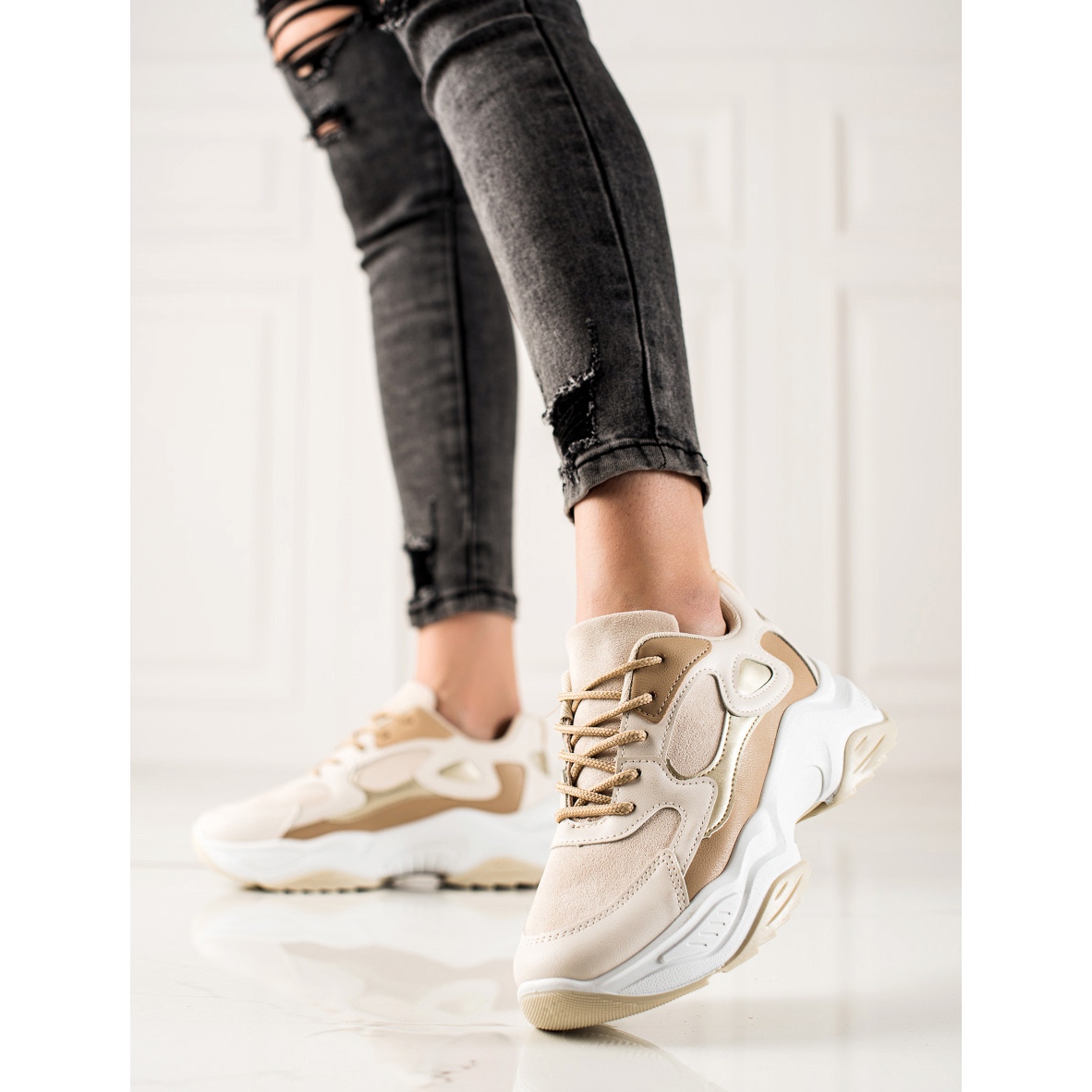 Presentamos las modernas zapatillas Marquiz en un tono beige y marrón, que encajan perfectamente con las tendencias actuales del calzado. Estos zapatos deportivos son la elección perfecta para las mujeres que valoran la comodidad y el estilo en el estilo diario.