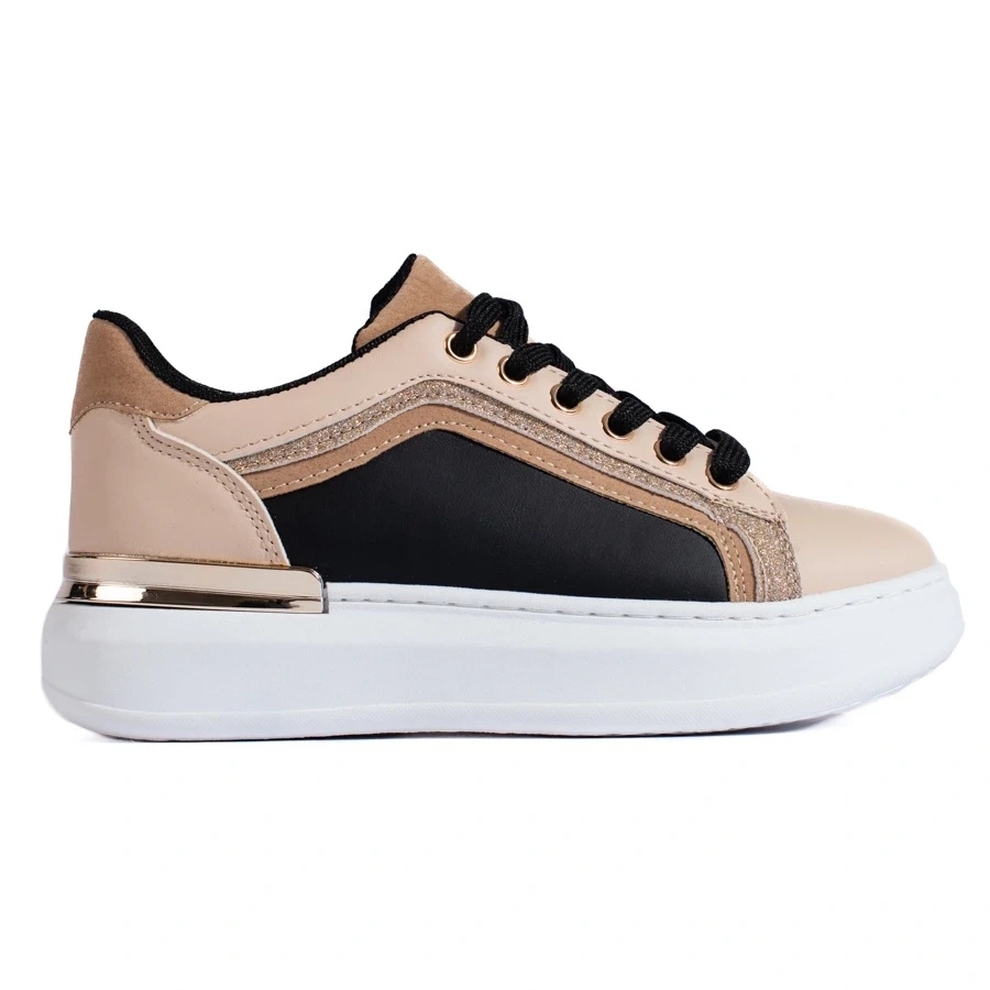 Zapatillas de deporte femenino beige con brillo - estilo y conveniencia todos los días
