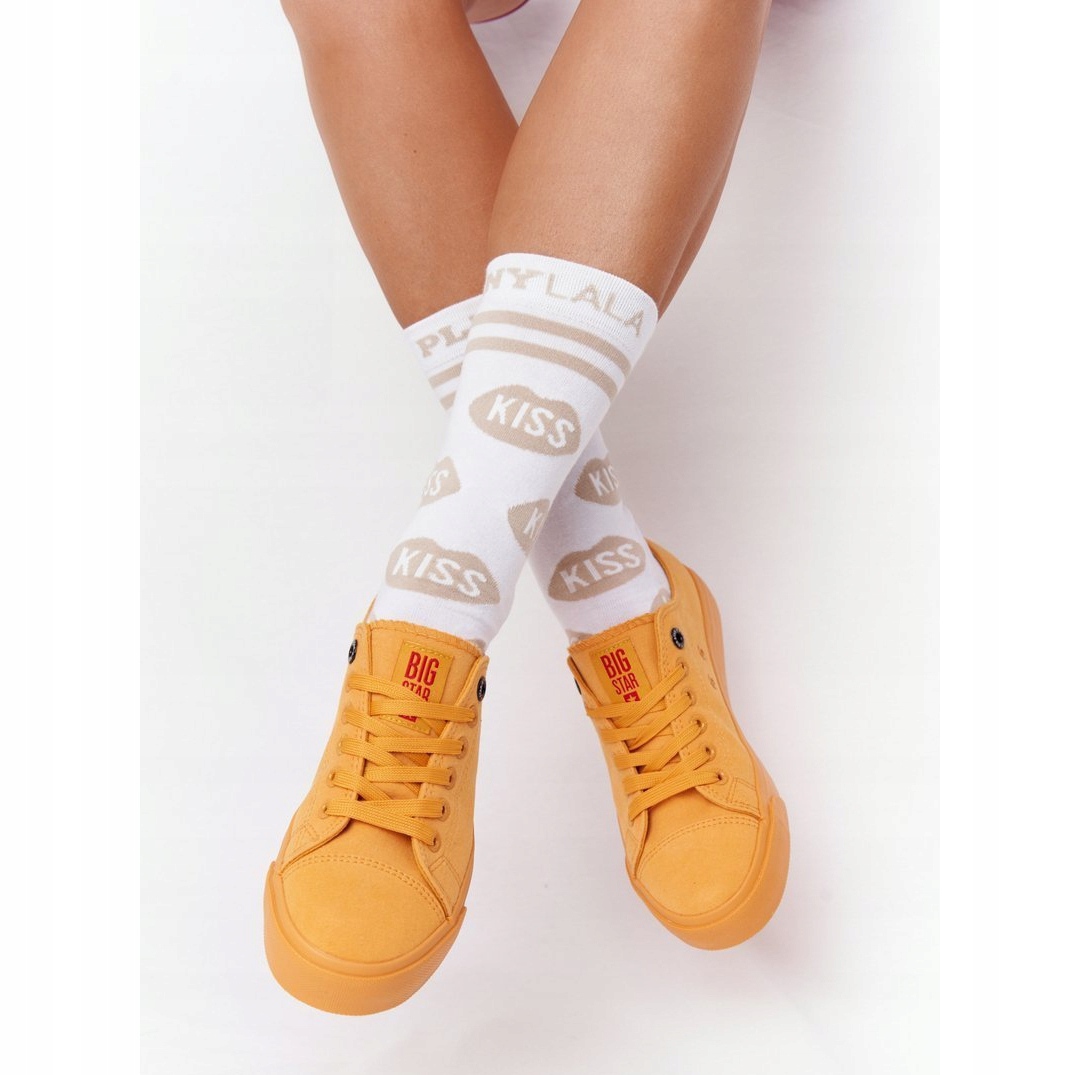 Las zapatillas de deporte para mujer Big Star HH274134 son unos coloridos zapatos de mujer de la popular marca polaca BIG STAR. Estas zapatillas están diseñadas en un color amarillo universal, lo que las hace combinar con muchos estilos diferentes. Los zapatos se adaptan bien a la forma del pie, lo que garantiza comodidad y conveniencia al usarlos.