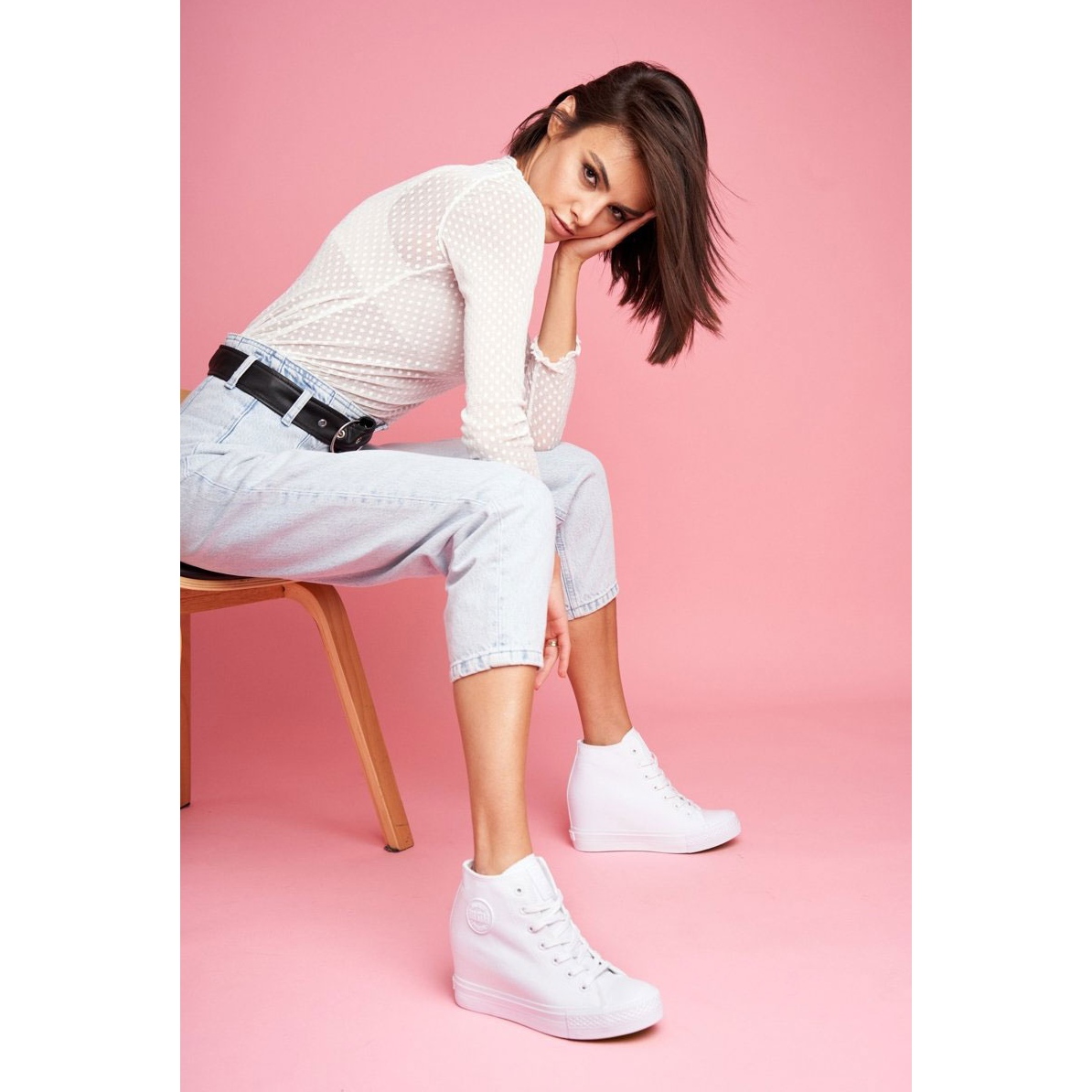 Zapatillas Mujer Big Star Blanco FF274A192 son unas zapatillas deportivas de cuña alta para mujer que llevan muchos años siendo un éxito. Los zapatos tienen un diseño único que combina literalmente con todo. La altura del tacón es de 7,5 cm, lo que eleva y resalta maravillosamente la figura. La parte superior de los zapatos está decorada con el logo de Big Star y su altura es de 8,5 cm. Los zapatos están hechos de tela, tanto en el exterior como en la plantilla. La suela es de goma.