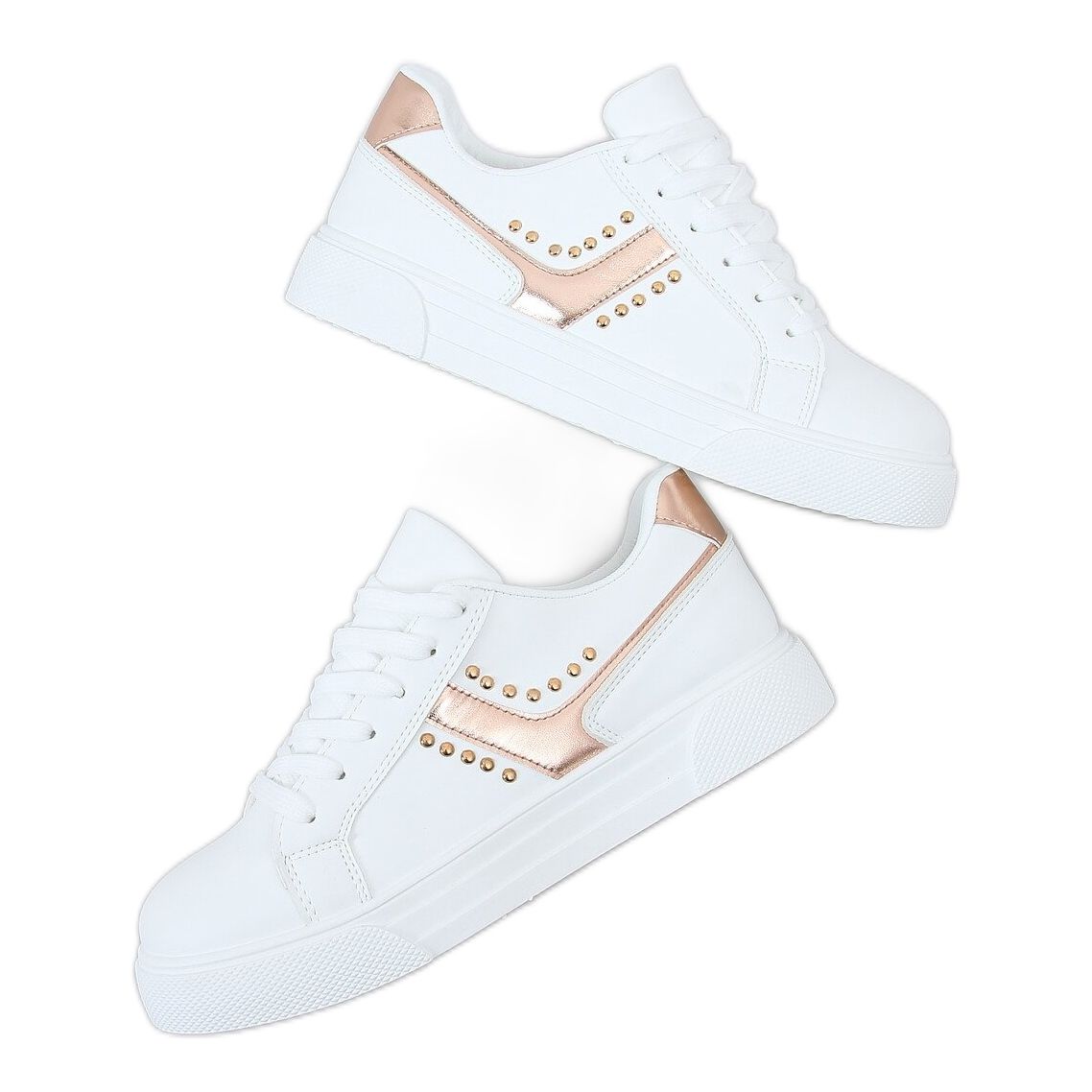 ¡Descubre la moda en un solo paso gracias a las zapatillas de mujer 1063 Champagne blanco! Estos zapatos únicos con cordones atraerán a todos los fanáticos de los estilos originales. El corte clásico, combinado con llamativas tachuelas, hace que este modelo atraiga la atención y complemente muchos estilos cotidianos.