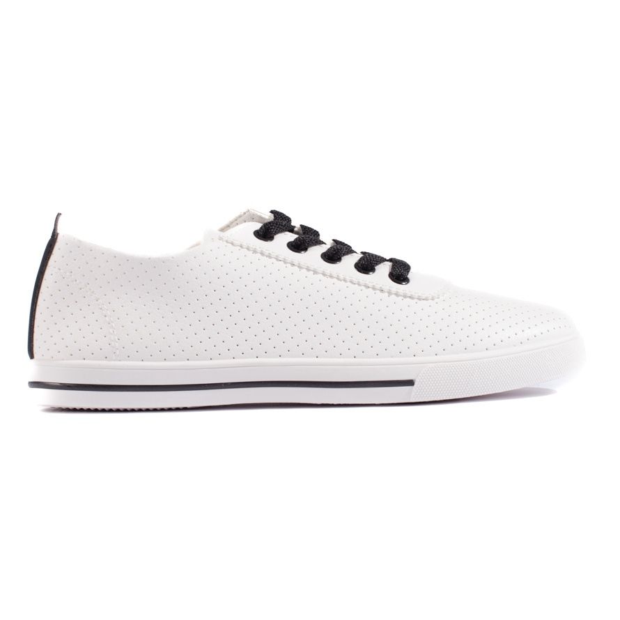 Detalles: Zapatillas de mujer blancas con cordones negros. blanco