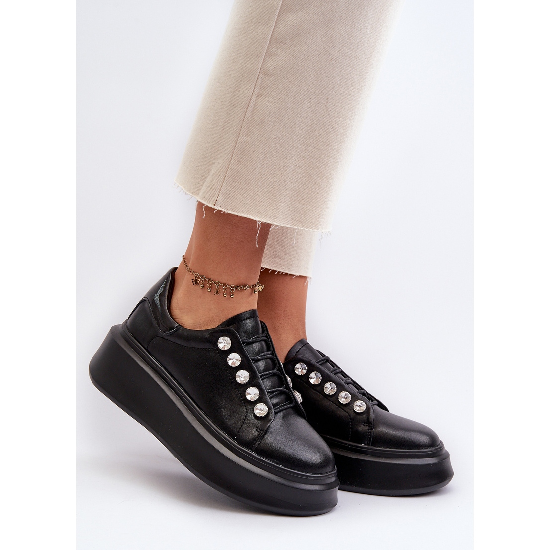 Conozca las zapatillas de deporte de cuero en una plataforma masiva de la marca S. Barski, que combina elegancia con comodidad, perfecta para cualquier ocasión. Hecho de cuero natural de alta calidad, estos zapatos deportivos negros sin duda atraerán la atención. Sus narices redondeadas garantizan la libertad de movimiento, y la plantilla suave garantiza la comodidad incluso durante largas caminatas o días intensos en la ciudad.