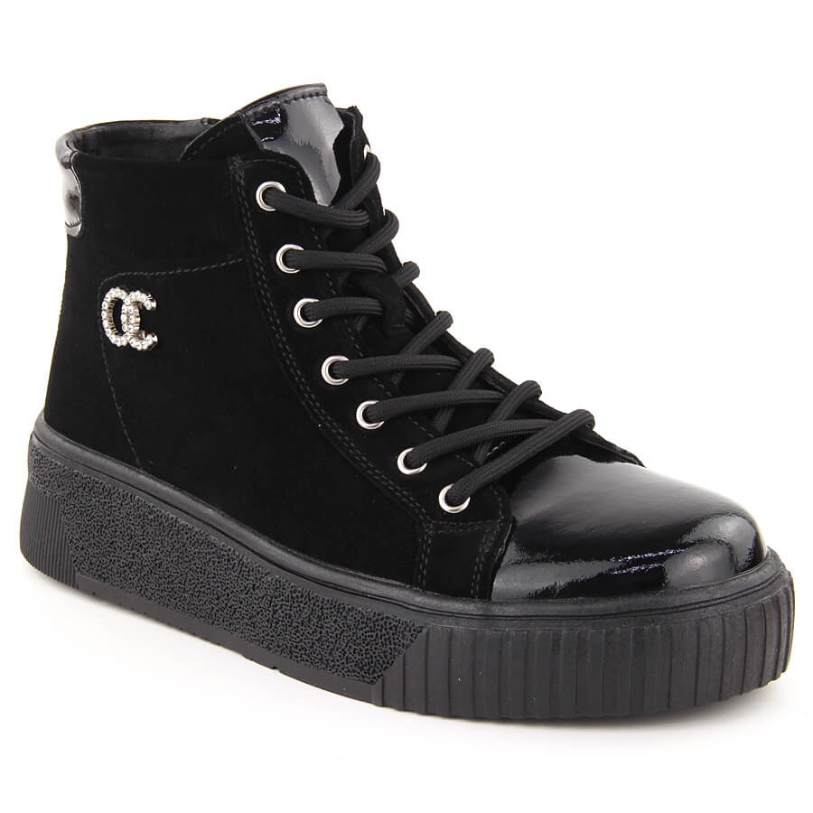 Este modelo se caracteriza por un revestimiento aislado y un cómodo inserto hecho de piel agradable, lo que los hace perfectos para días más fríos. La parte superior alcanza casi 10 cm, y una suela plana con un espesor de 3.5 cm garantiza la comodidad durante largas horas. Una ventaja adicional son los diamantes de imitaciones sutiles, que le dan a los zapatos un brillo especial.