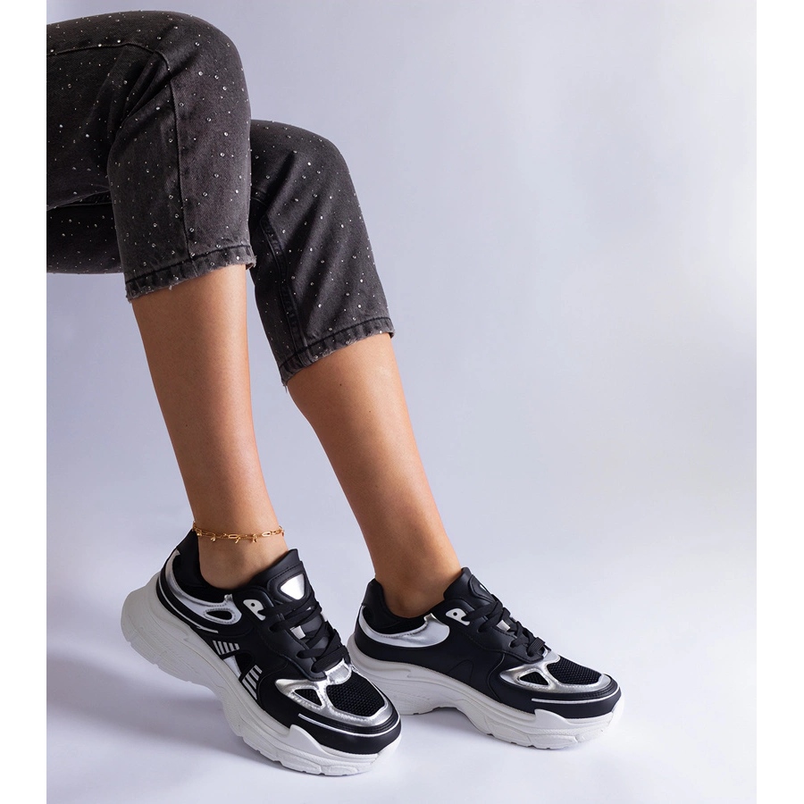 Las zapatillas de deporte para mujeres negras con insertos de plata son una gran opción para cada mujer moderna que quiere combinar el estilo con comodidad. Estos elegantes zapatos deportivos, marcados con el modelo A88-181, combinan alta calidad, diseño moderno y funcionalidad.