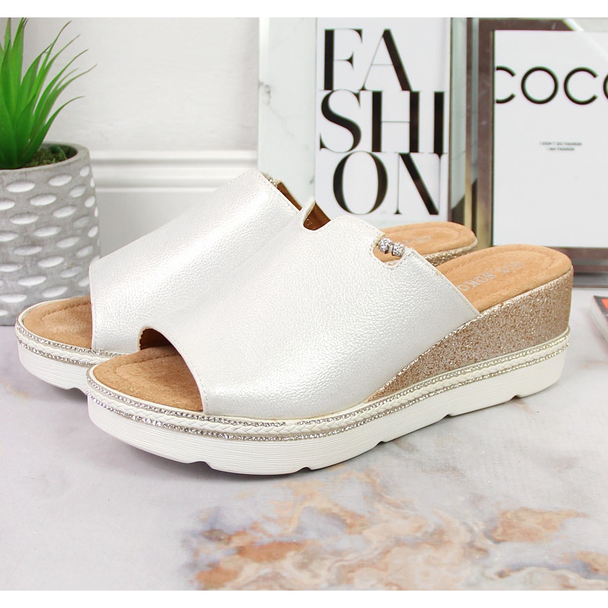 Detalles: Zapatillas de mujer plateadas con cuña T.Sokolski plata