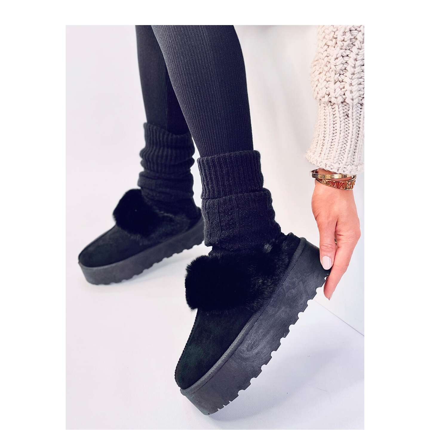 Zapatillas de invierno para mujer: botas de nieve con plataforma. ¡Este modelo original con suela alta de 4,5 cm y pelo elegante es un éxito absoluto esta temporada! Están forrados con pelo suave al tacto y cálido, por lo que son perfectos para la comodidad de tu hogar en invierno... ¿Qué más se puede pedir? : ) Material exterior: ante ecológico.