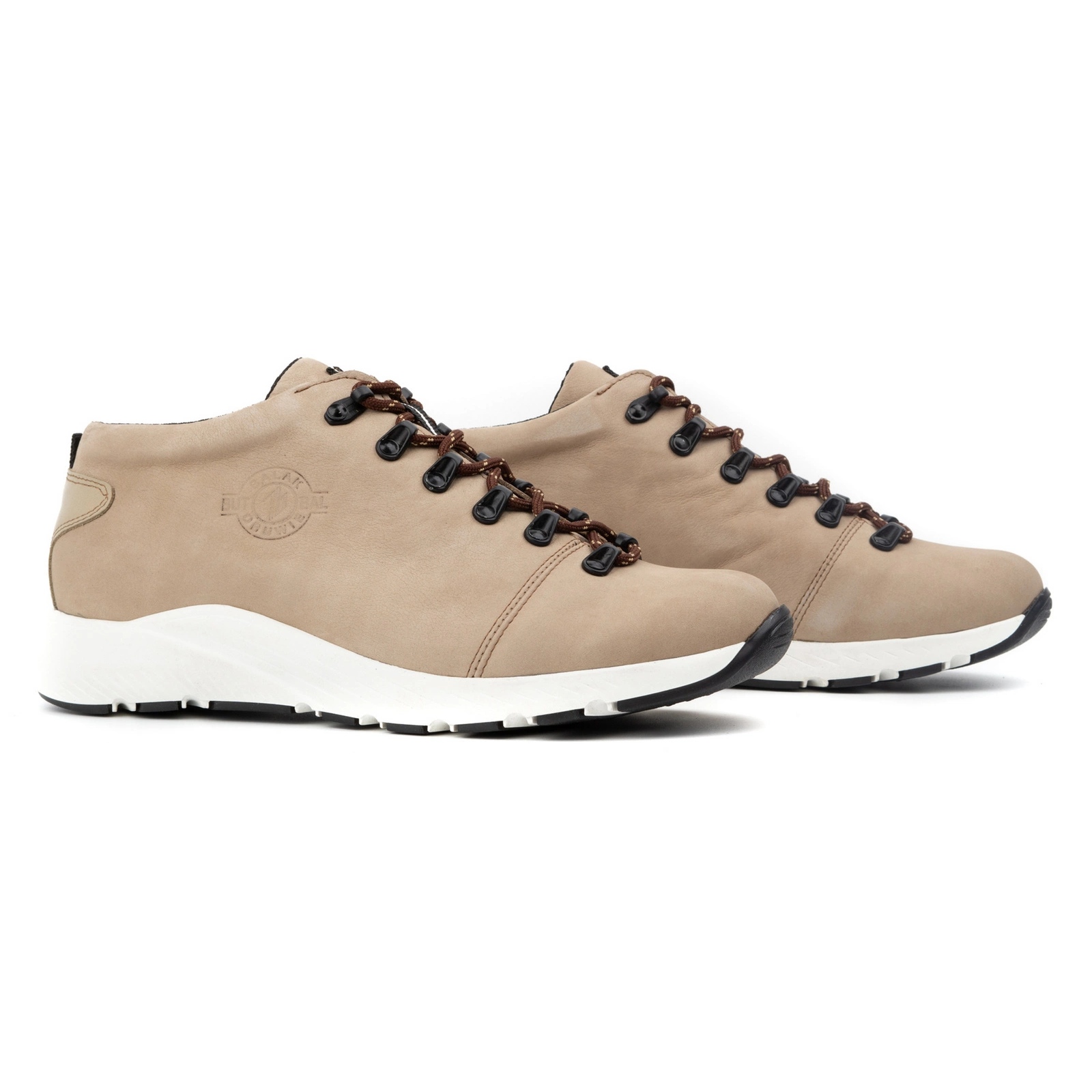 Los Zapatos Trekking Mujer ButBal 674BB son un calzado cómodo dedicado a la mujer, confeccionado en piel natural color beige. Se caracterizan por cordones estándar: cordones colocados en presillas en la parte posterior del pie. La suela de los zapatos es una plataforma blanca de 3 centímetros con suela sintética con dibujo de color marrón claro. El peso del producto con embalaje es de 0,8 kg.