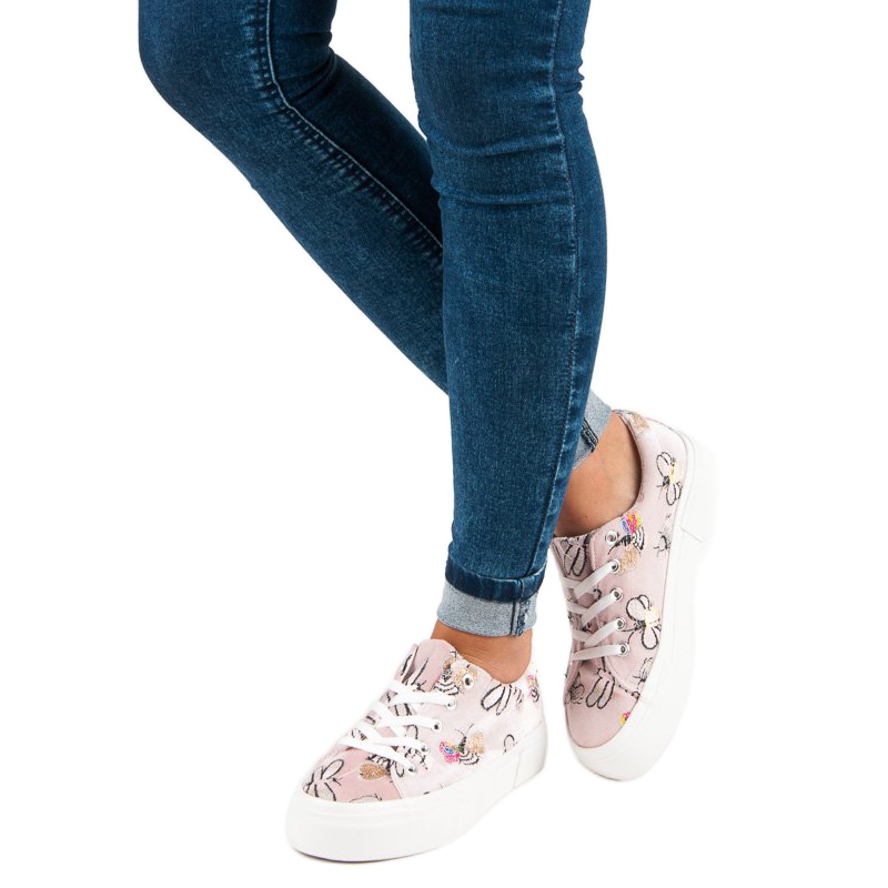 Te presentamos unas encantadoras zapatillas con plataforma en color rosa y blanco de la marca Kylie. Estos zapatos únicos cuentan con un fabuloso y colorido patrón de insectos, lo que los convierte en una manera perfecta de animar cualquier estilo. Independientemente de su edad, toda mujer apreciará su diseño original y su comodidad de uso.