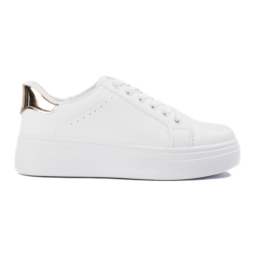 Hechos de cuero ecológico, estos zapatos blancos no solo lucen elegantes, sino que también protegen el medio ambiente. El material exterior es 100% símil piel, lo que no sólo les aporta elegancia, sino que también los hace fáciles de mantener. El interior de los zapatos está forrado con material 100% textil, lo que garantiza un uso agradable y una adecuada ventilación de los pies.