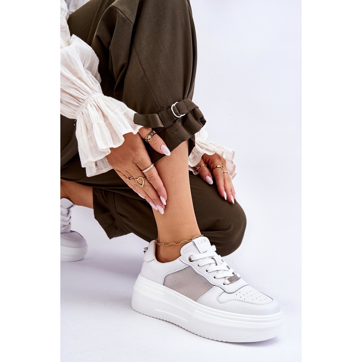 Estas zapatillas deportivas blancas se colocan sobre una enorme pero ligera plataforma de 5 cm de altura que te proporcionará una amortiguación adicional en cada paso. Su puntera redonda garantiza comodidad y espacio para los dedos, y el uso de una suela sintética prolonga la durabilidad del calzado.