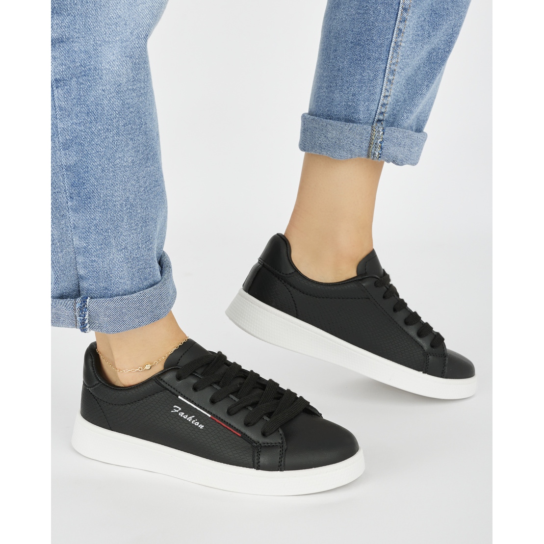 Los zapatos deportivos clásicos negros son la elección perfecta para las mujeres que valoran una combinación de comodidad y estilo moderno. Estos zapatos deportivos bajos se caracterizan por un tacón suave y reforzado que garantiza comodidad durante las actividades diarias. La suela de plástico, provista de banda de rodadura, garantiza un excelente agarre, lo que las hace adecuadas para diversas superficies.