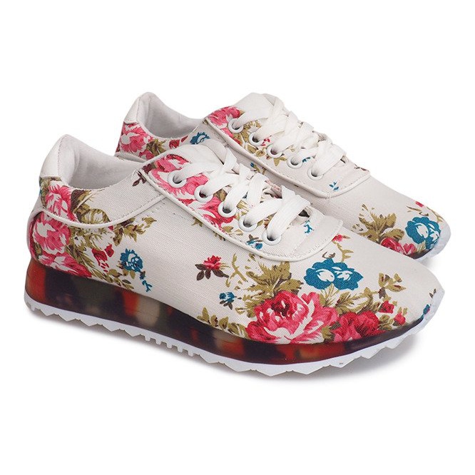 Detalles: Zapatillas Deportivas Con Flores BL282 Blanco multicolor