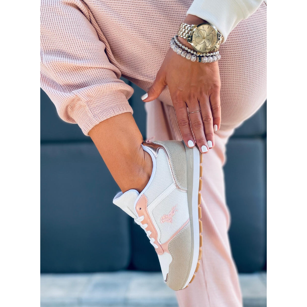 Detalles: Zapatillas deportivas de mujer Furlo Rosa beige blanco