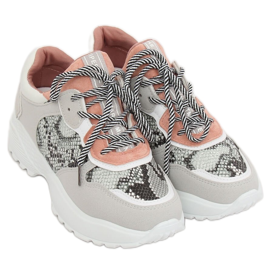 Detalles: Zapatillas deportivas de piel de serpiente gris BL170P rosa