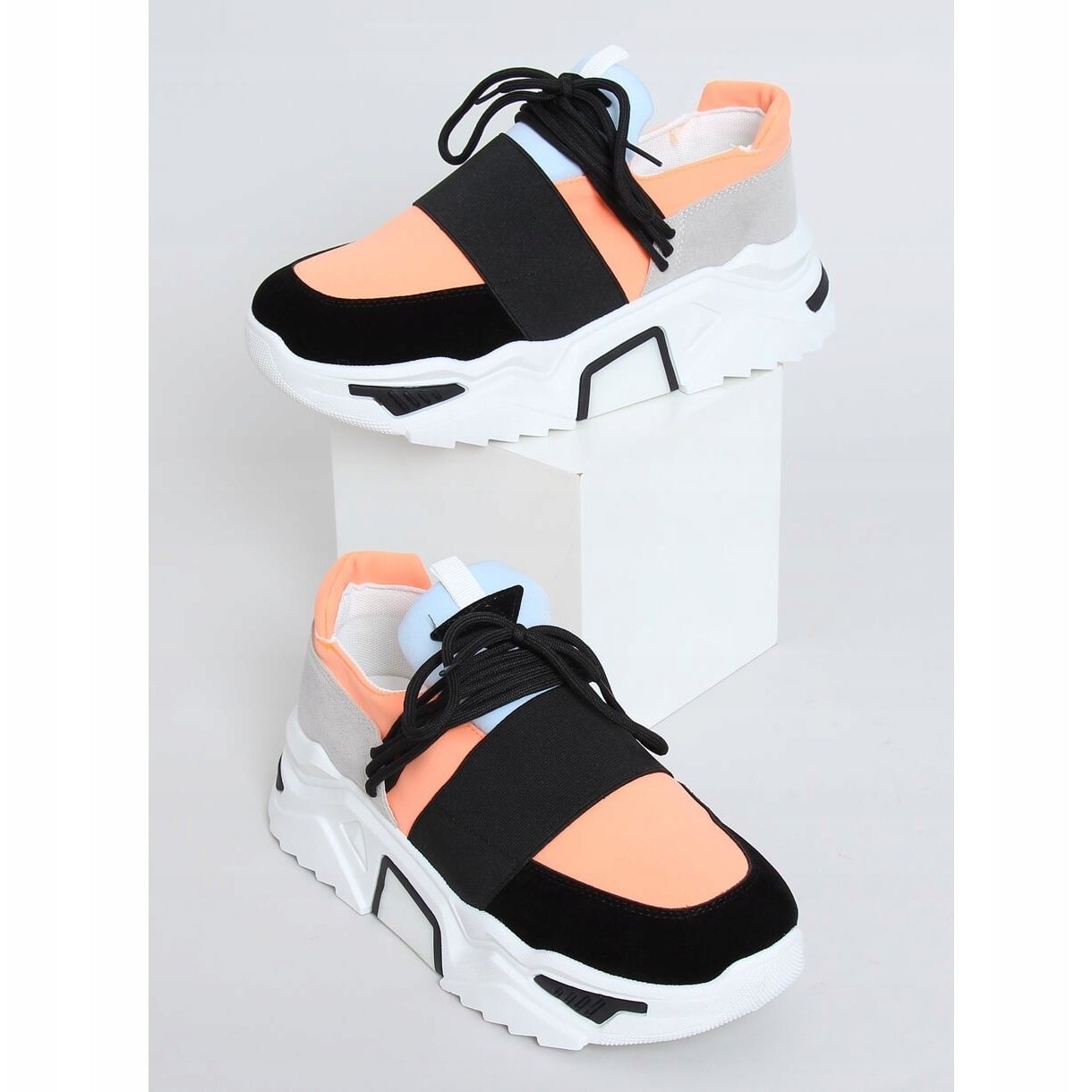 Los zapatos combinan diseño moderno y comodidad de uso. Su llamativa combinación de colores llamará la atención y la suela alta y blanca les da un carácter único. Gracias al uso de ante ecológico y tejido suave, estos zapatos no sólo son estéticos, sino también cómodos: el interior forrado de tela cuida tus pies durante todo el día.