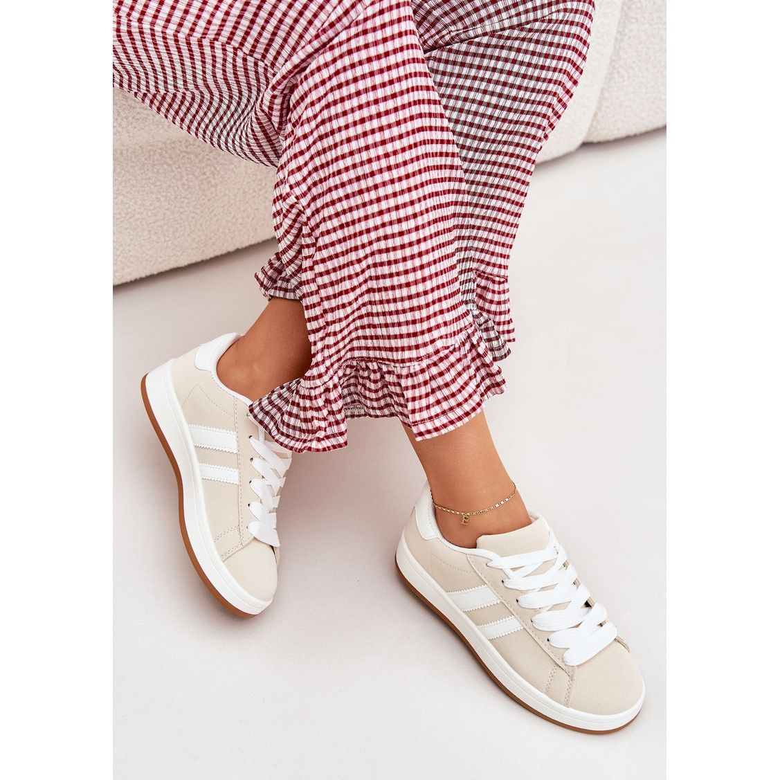 Descubra la combinación perfecta de estilo y conveniencia con zapatillas deportivas para mujeres zapatillas con cuero ecológico en un hermoso tono de beige. Estos zapatos clásicos de encaje están diseñados para las necesidades de las mujeres, ofreciendo un ajuste perfecto al pie gracias al ajuste con la ayuda de los cordones.