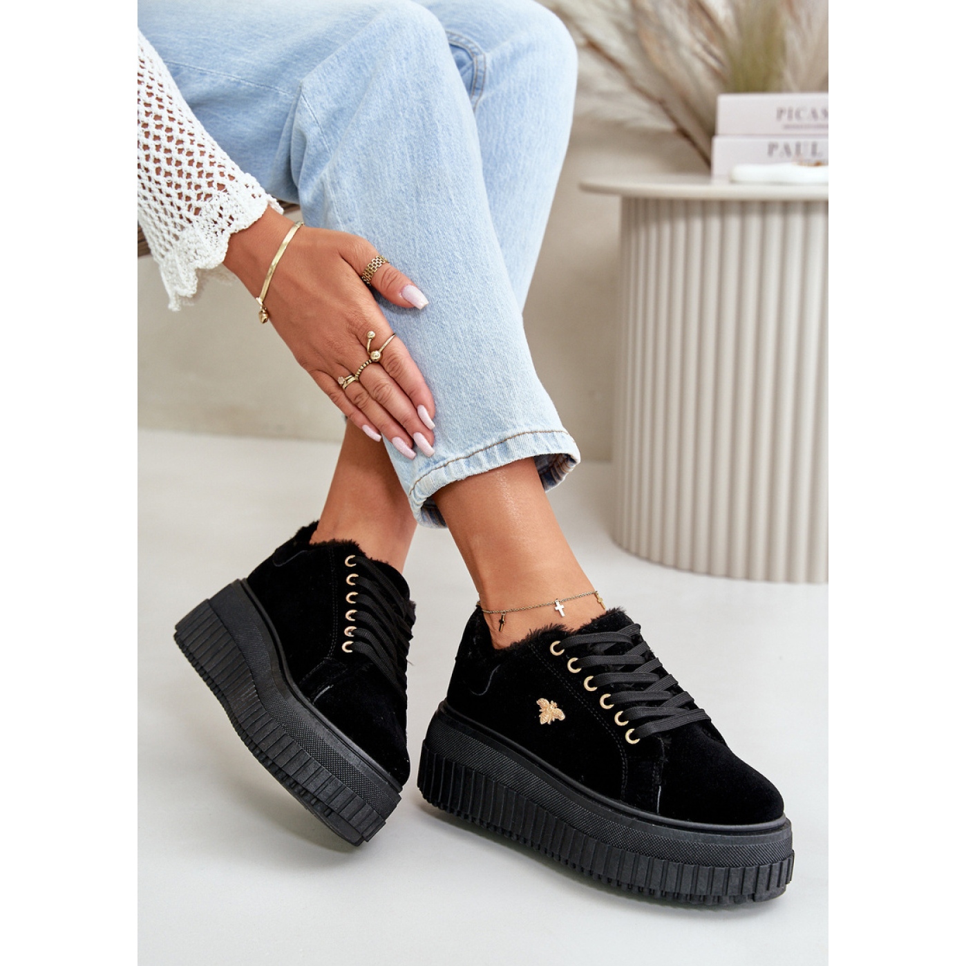 Las zapatillas de deporte de mujer con plataforma enorme son una opción moderna y cómoda para los días más fríos. El interior de los zapatos está aislado con pelo suave, lo que garantiza calidez y comodidad. Puntera redondeada, que añade un look clásico y proporciona espacio adicional para los dedos, aumentando la comodidad. Hay un detalle dorado en la parte superior que aporta elegancia y estilo, llamando la atención. Estas zapatillas son perfectas tanto para estilismos cotidianos como para conjuntos más informales, garantizando comodidad y un look a la moda durante todo el día.
