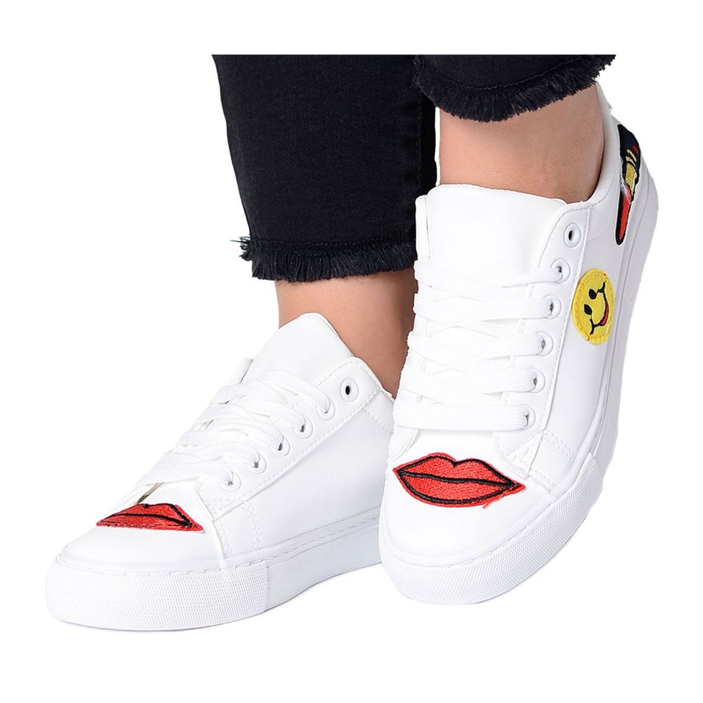 Te presentamos unos zapatos deportivos blancos para mujer con parches RedMouth: ¡la elección perfecta para el verano que pasa rápidamente! Estos zapatos únicos combinan un estilo deportivo con un acabado original. Los parches en forma de lápiz labial rojo, un emoticono sonriente y los característicos labios rojos atraerán la atención de cada persona, añadiendo un carácter único a tu estilismo.