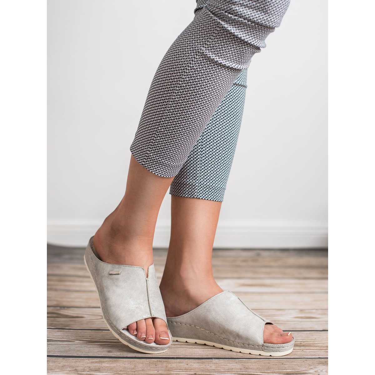 La altura de la cuña de 4 cm y una sólida plataforma de 2 cm de altura garantizan una excelente estabilidad sin sacrificar la elegancia. Estas chanclas deleitan por su sencillez y su estilo casual universal, lo que las convierte en un complemento perfecto para muchos estilos cotidianos. Sin estampado, con un corte clásico, son una gran opción para fiestas diversas, paseos por la ciudad o días de relax en la playa.