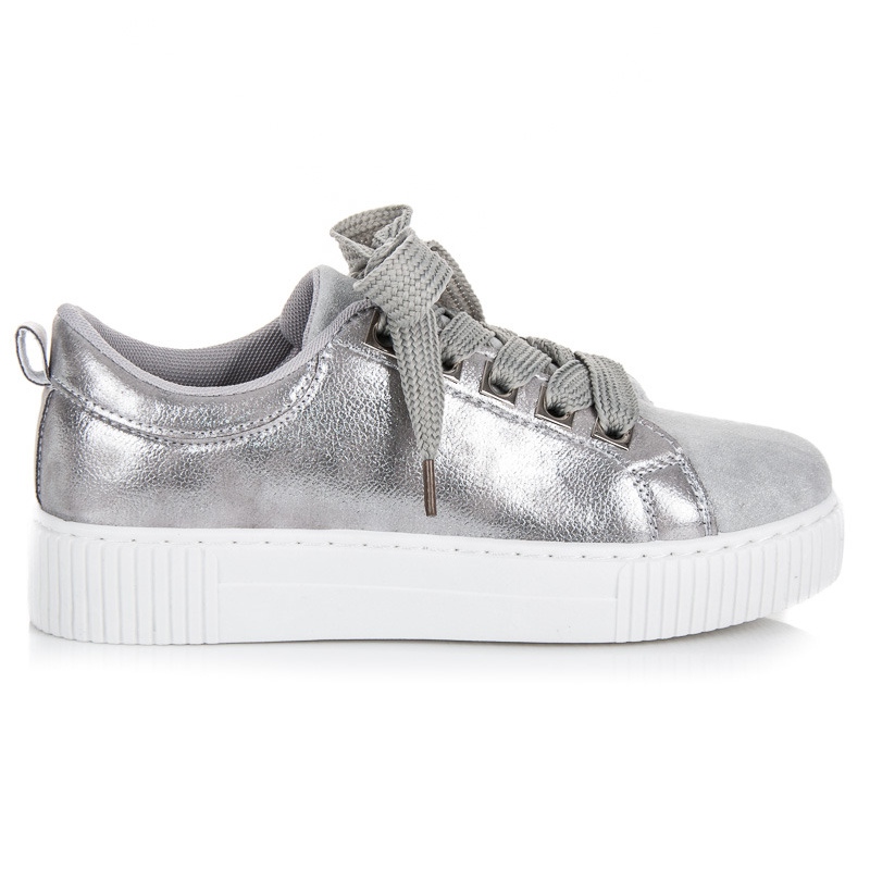 Las zapatillas deportivas con plataforma y cordones son una opción perfecta para las mujeres que valoran el estilo y la comodidad todos los días. Estas zapatillas bajas en un elegante color gris encajarán perfectamente en varios estilos, tanto casuales como más deportivos. Fabricados en piel ecológica de alta calidad, garantizan durabilidad y facilidad de cuidado.