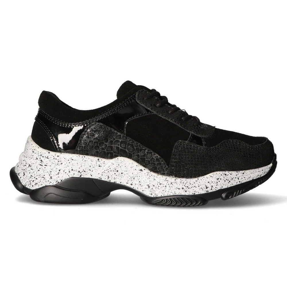 El interior de los zapatos está forrado de material, lo que asegura una adecuada ventilación y un uso agradable. El inserto de cuero ecológico aumenta además la comodidad. El modelo está disponible en el clásico color negro, lo que hace que combine perfectamente con varios estilos, desde el informal hasta el más elegante.