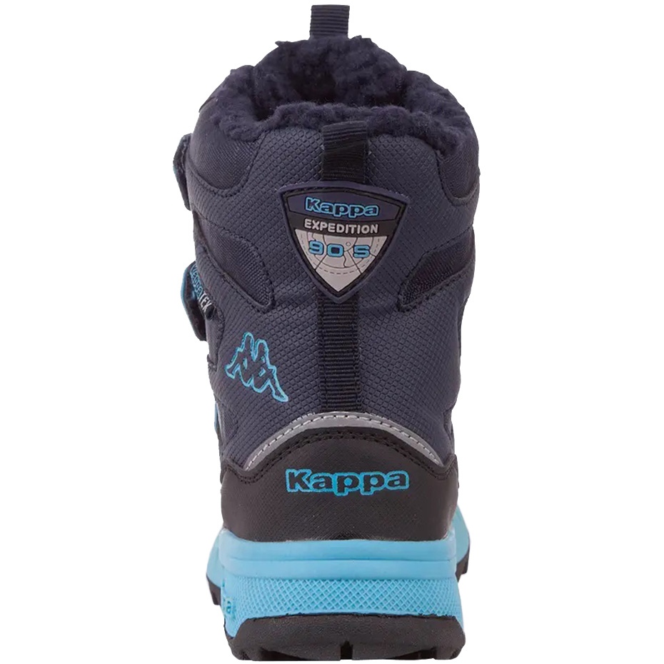 Los zapatos infantiles con aislamiento Kappa son perfectos para el otoño y el invierno. El suave forro de pelo sintético aísla del frío. La parte superior alargada fabricada con materiales sintéticos tiene propiedades impermeables, cortavientos y transpirables. La membrana KappaTEX minimiza la entrada de humedad en los zapatos. Cierre con tres tiras de velcro. Suela perfilada con banda de rodadura adherente. Asas en la parte delantera y trasera. Detalles reflectantes.