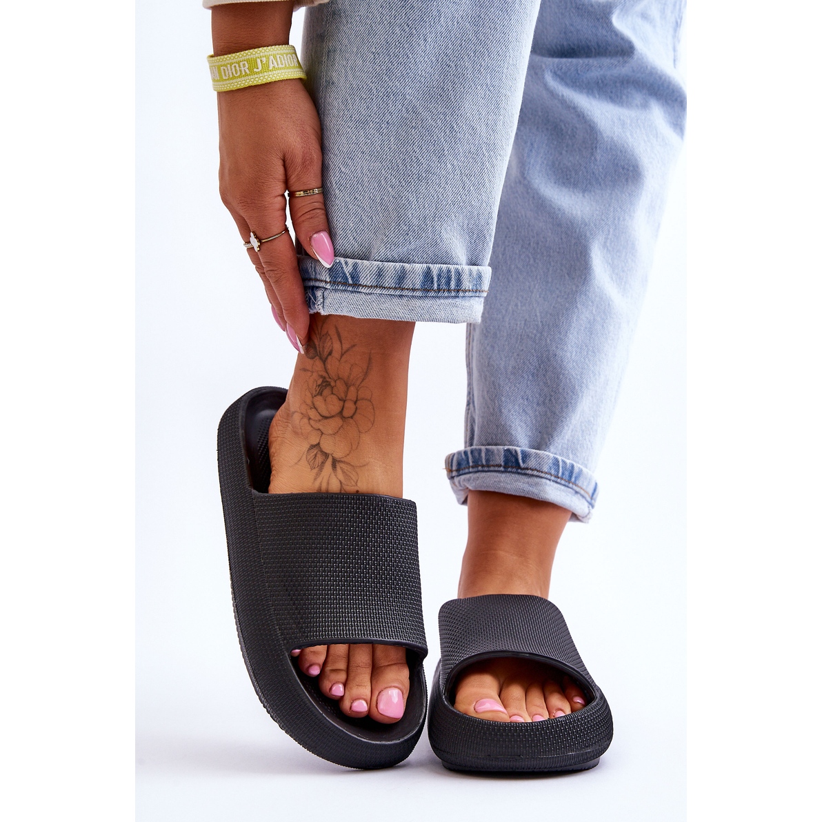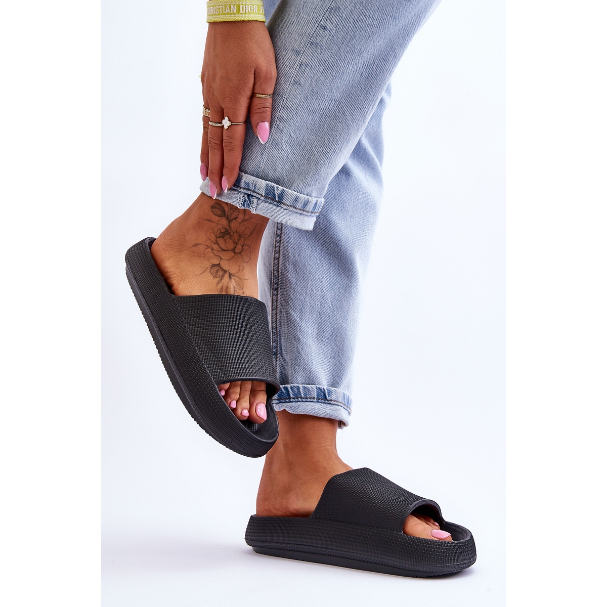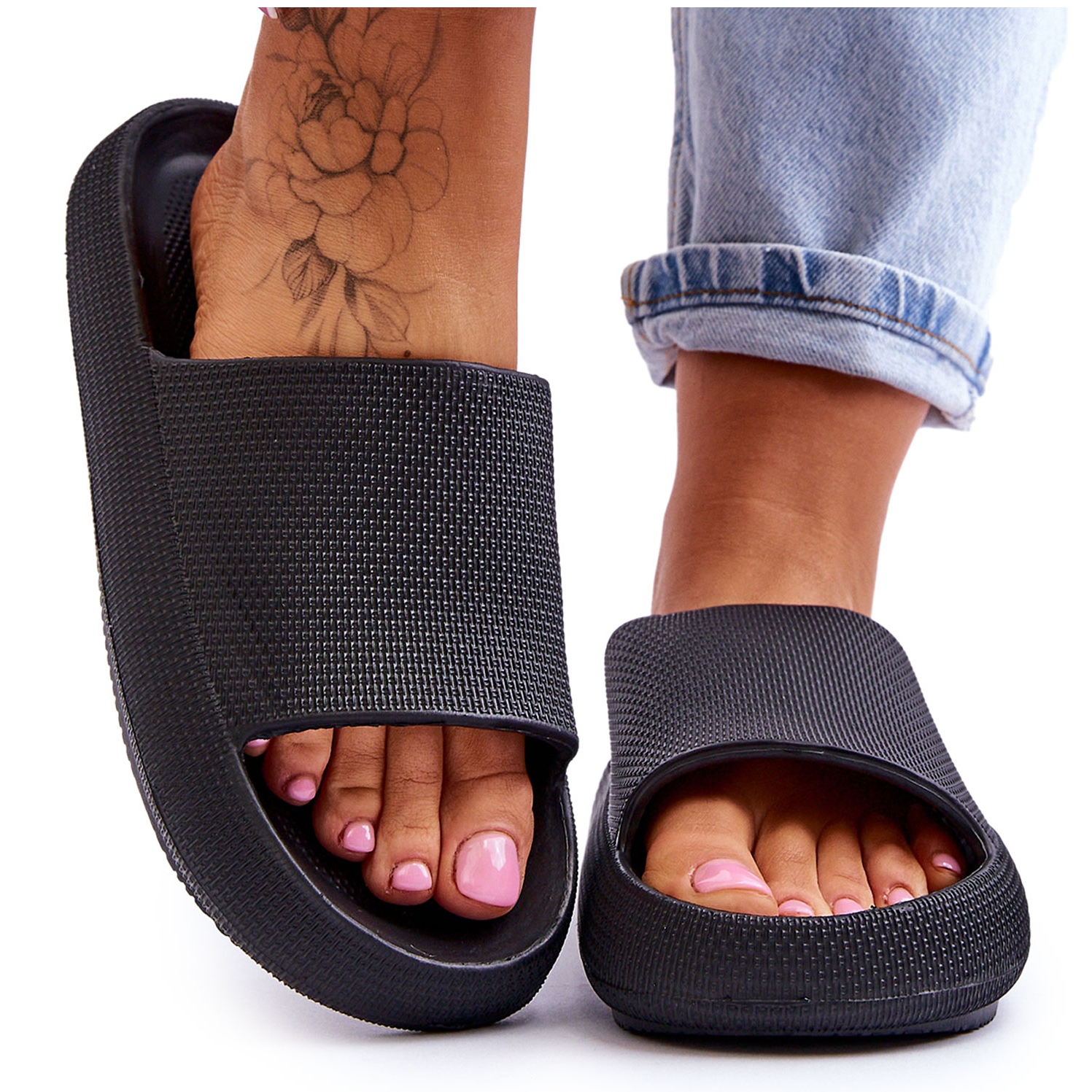 Sin embargo, estas chanclas son más que comodidad. La enorme suela de 3,5 centímetros no sólo garantiza comodidad, sino que también añade unos centímetros de altura y enfatiza el carácter moderno y urbano del calzado. Gracias al color negro uniforme, puedes combinarlos fácilmente con muchos estilos, y la ausencia de cierres tradicionales los hace extremadamente prácticos y rápidos de poner y quitar.