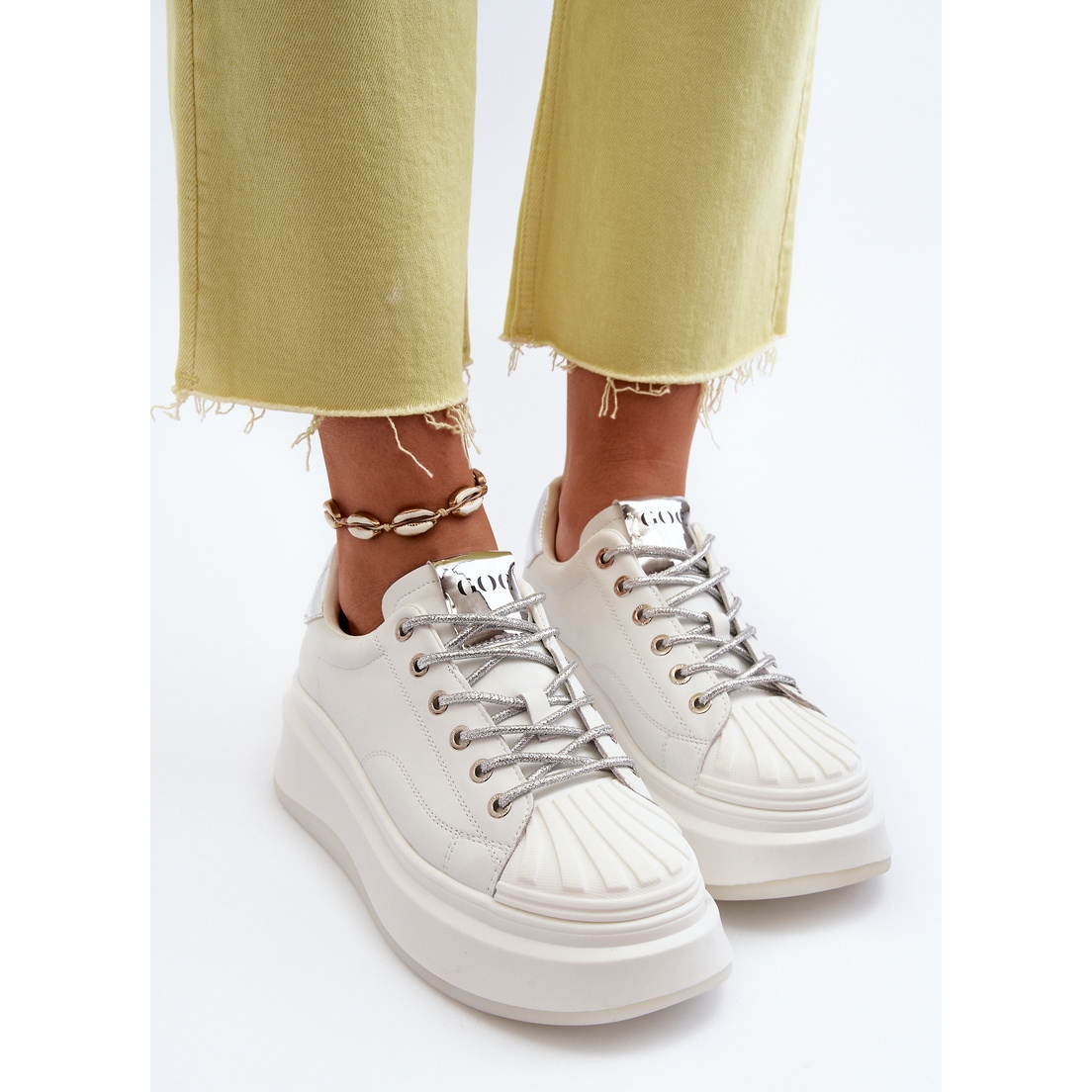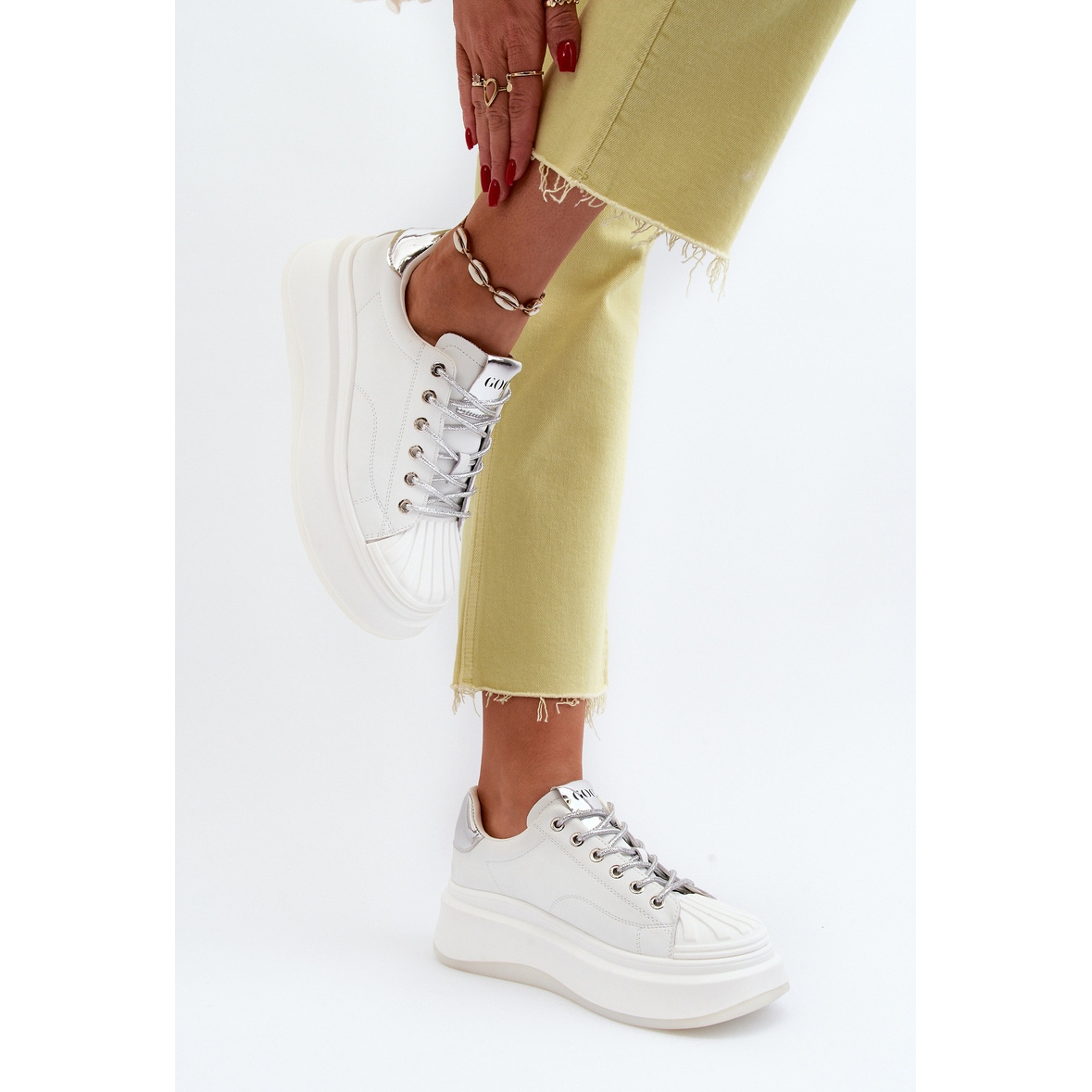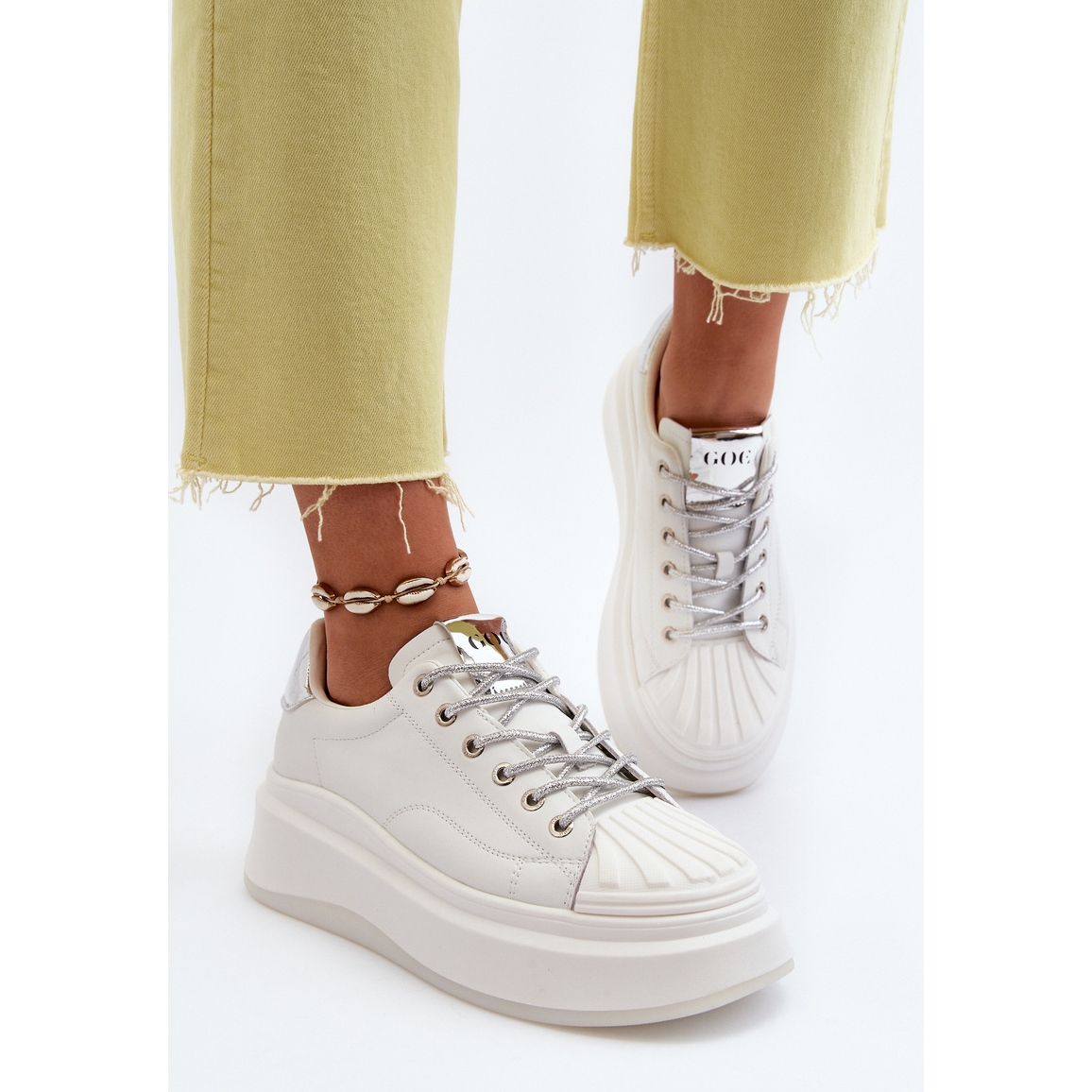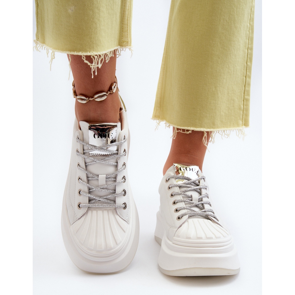 La ventaja clave de las zapatillas GOE es la suave plantilla de cuero ecológico que garantiza comodidad incluso durante una actividad prolongada. Gracias a esto, estos zapatos son la elección perfecta para el día a día, independientemente de tu plan de actividades. La plataforma sobre la que se basan los zapatos no sólo añade unos centímetros a la altura de los usuarios, sino que también aumenta la estabilidad de su pisada, algo especialmente importante para las personas que valoran un estilo de vida activo.