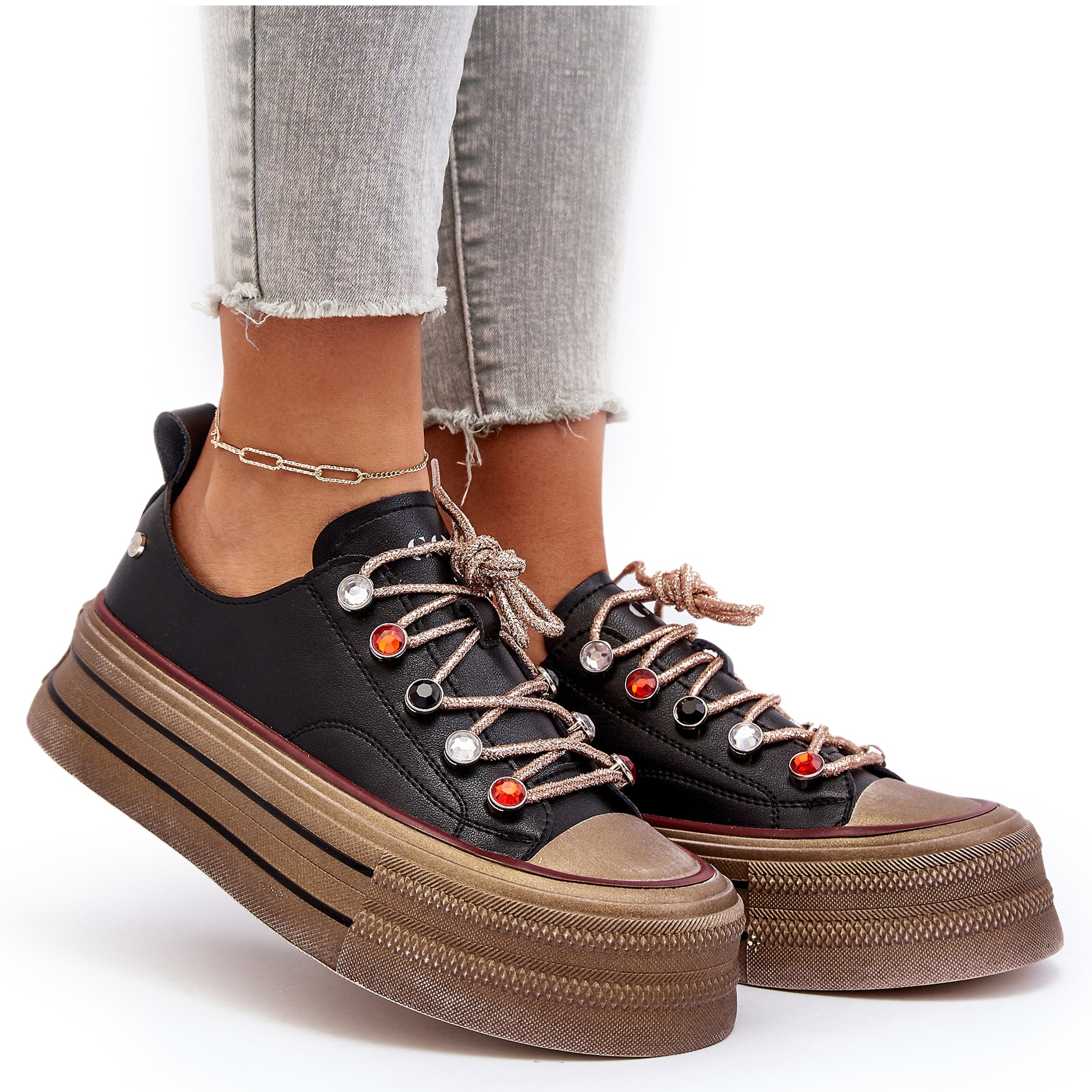 Las zapatillas deportivas con plataforma GOE NN2N4053 de mujer en color negro son la elección perfecta para las mujeres que valoran el estilo y la comodidad. Fabricadas en piel natural de alta calidad, estas zapatillas garantizan no solo durabilidad, sino también una excelente ventilación. La plantilla suave y extraíble de piel ecológica garantiza comodidad incluso cuando se usan durante mucho tiempo, lo que las hace adecuadas para muchas situaciones cotidianas.