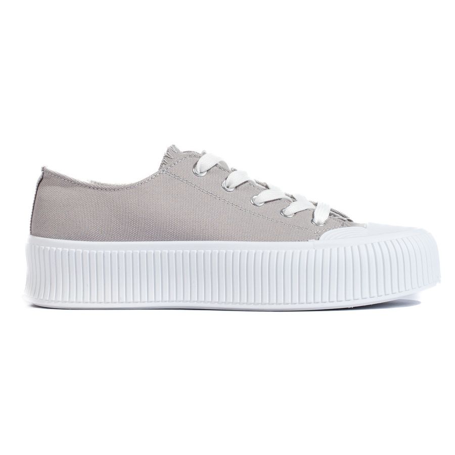 Las zapatillas de deporte de plataforma gris femenina son la opción perfecta para las mujeres que valoran la comodidad y la apariencia cotidiana de moda. Hecho de tela de alta calidad, estos zapatos de tendencias aseguran la comodidad del uso, gracias a una suave y construida fijación y un inserto de tela.
