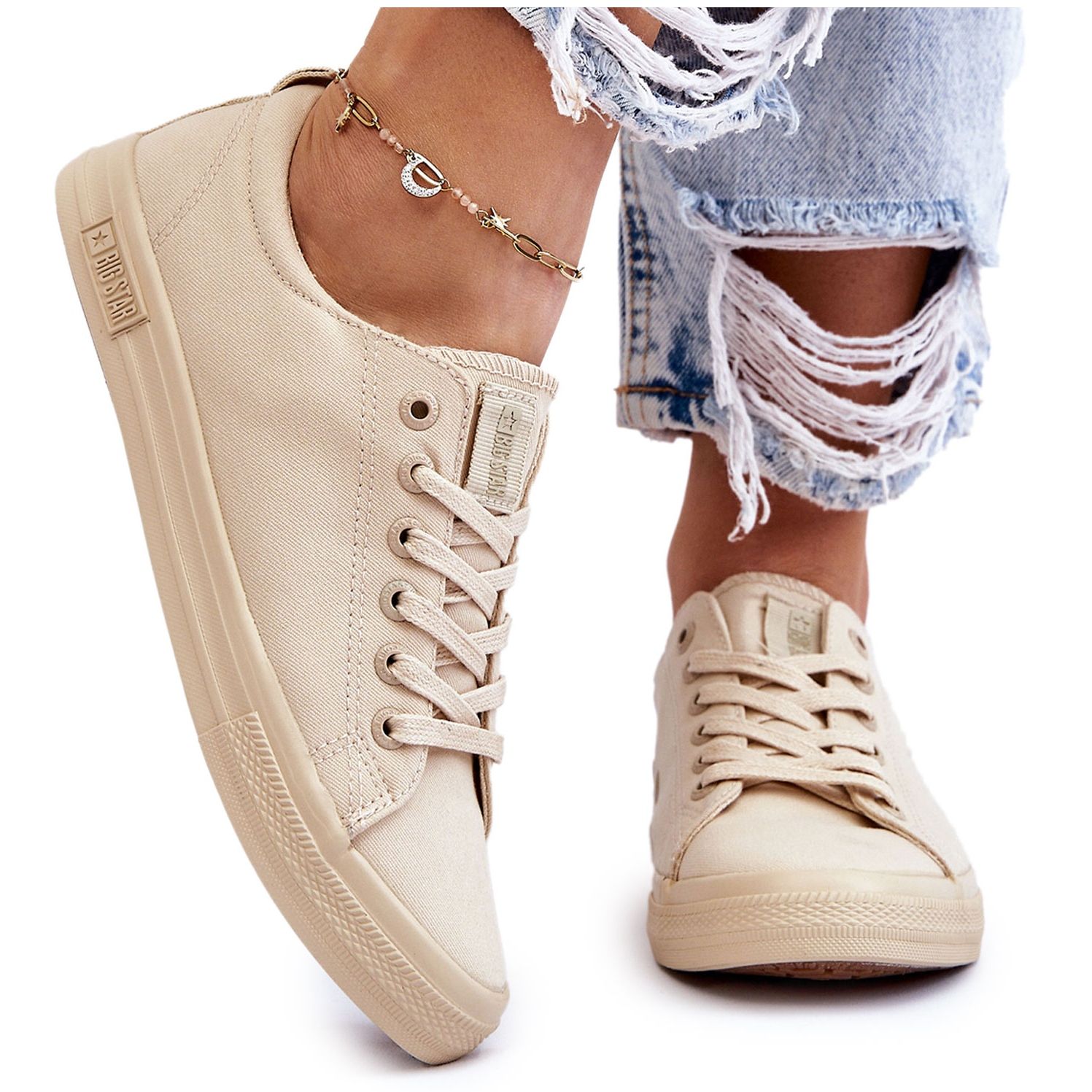Presentamos las zapatillas de deporte Smooth Big Star LL274061 de las mujeres en beige, la elección perfecta para cada mujer que quiere combinar el estilo con comodidad todos los días. Estas zapatillas clásicas son un elemento esencial de la ropa que funcionará tanto en estilizaciones casuales como cotidianas.