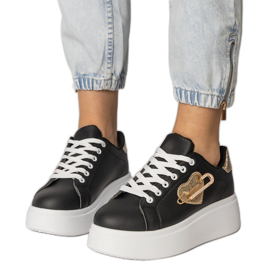 Descubra una nueva encarnación de elegancia deportiva con zapatillas negras con un corazón y un pin de seguridad de Lerisol. Ideal para mujeres que desean combinar un aspecto de moda con comodidad todos los días, estos zapatos ciertamente se convertirán en su artículo de vestuario favorito.