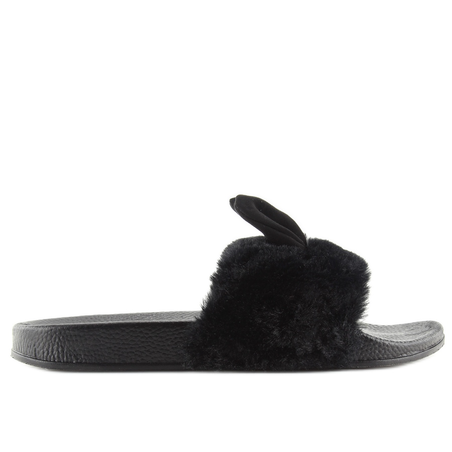 Detalles: Zapatillas negras negras con pelo y orejas. negro