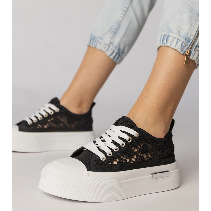 These elegant, black sneakers perfectly match many different styles, from casual to more elegant. Su nariz redonda y baja altura aseguran la comodidad durante todo el día, y la plataforma de 4,5 cm de altura agrega ligereza y enfatiza sutilmente la figura.