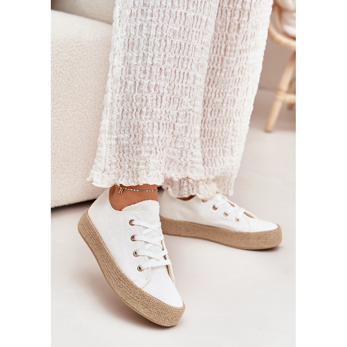 Detalles: Zapatillas para mujeres en la plataforma con trenza blanca blanco