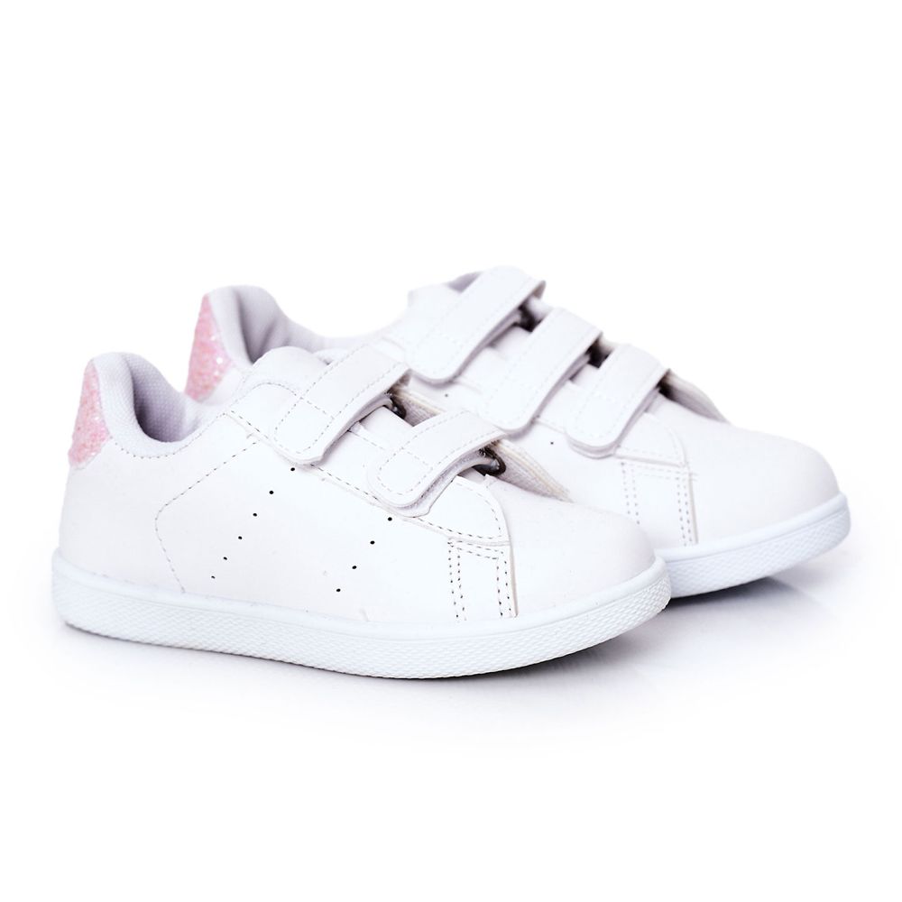 Detalles: Zapatillas para niños con velcro blanco y rosa