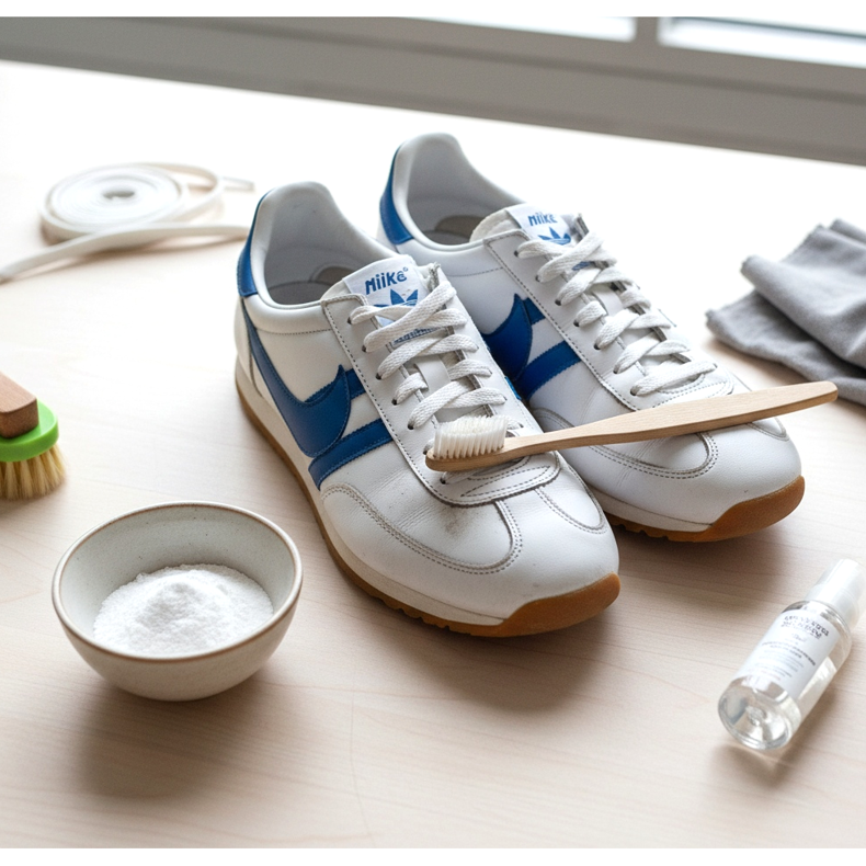 Las zapatillas retro, especialmente las blancas, requieren un cuidado regular. Afortunadamente, es más fácil de lo que parece. Una pasta de bicarbonato de sodio y agua es perfecta para limpiar el cuero blanco; use un cepillo de dientes viejo y frote suavemente la suciedad. El efecto es sorprendente.