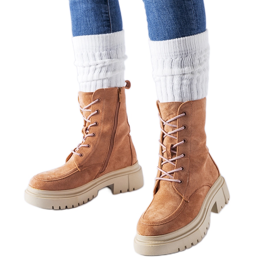 Las botas RIRT Red Riel son una combinación de estilo urbano y construcción práctica. Hecho de cuero ecológico de gamuza, incrustado en una suela de plástico negra masiva y contrastante. Una nariz redondeada, una cerradura y un sujetador de cordones aseguran un ajuste cómodo, y el calentamiento mantiene el confort térmico en los días más fríos. Modelo para el tobillo (23 cm de altura) con un talón plano y una plataforma de 5 cm.