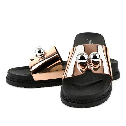 Las chanclas rosas con bolas 1819 son la elección perfecta para las mujeres que quieren combinar comodidad con un look a la moda. Estos encantadores mules de cuña se distinguen no solo por su exclusivo color oro rosa, sino también por detalles elegantes, como bolas inusuales, que les aportan elegancia y originalidad. Gracias a la combinación de rosa y negro, tienen un aspecto muy elegante y se adaptan perfectamente a las tendencias actuales.