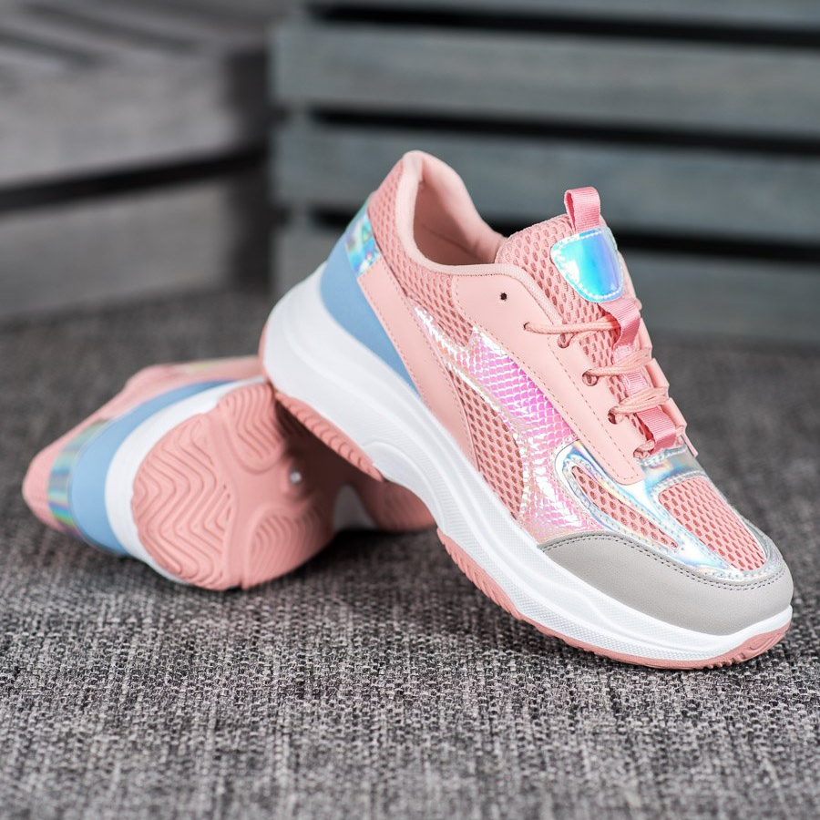 Detalles: Bona Zapatillas rosas con malla azul gris
