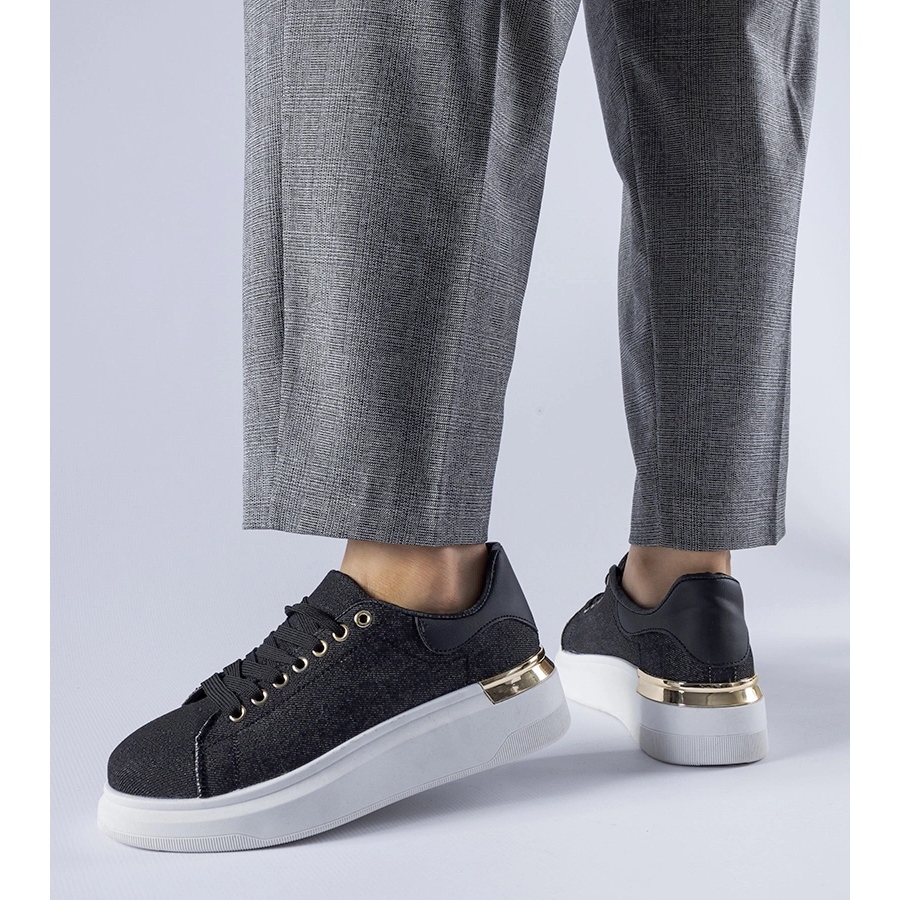 El modelo A-90 también se distingue por una plataforma de 5 cm de altura, que proporciona soporte adicional y un gran aspecto. El color negro clásico combinado con una suela blanca y acentos dorados hace que estas zapatillas de deporte no solo sea práctica, sino también extremadamente elegante. Gracias a una forma simple sin patrones, se ajustan prácticamente a todos los guardarropa.