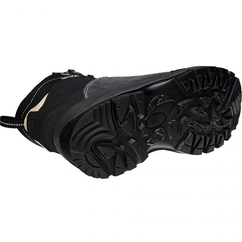 La parte superior alta protege eficazmente el tobillo contra lesiones y la banda rígida protege los dedos contra lesiones. Gracias a la avanzada membrana Hydrotex, los zapatos son impermeables y al mismo tiempo transpirables, lo que permite que el aire fluya libremente y elimine el exceso de humedad.