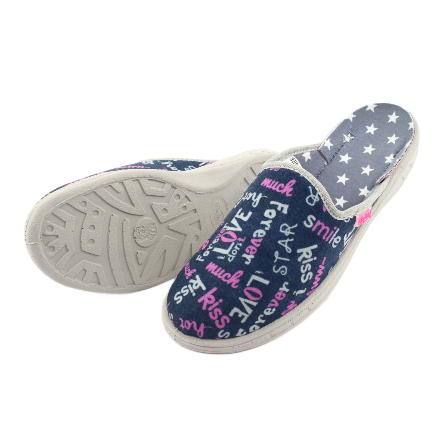 La plantilla es de material textil gris de alta calidad, decorada con estrellas blancas, asegurando comodidad de uso durante todo el día. La atención a los detalles, como las delicadas decoraciones, demuestra que Befado no se olvida de la estética manteniendo los más altos estándares de funcionalidad.