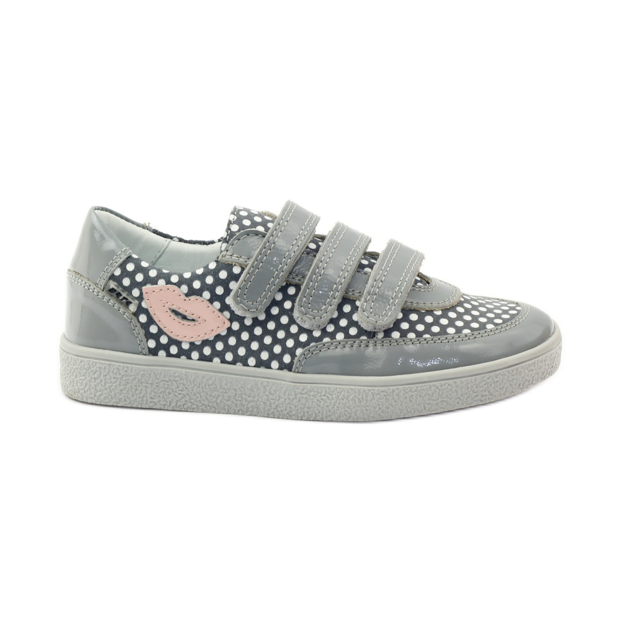 Los zapatos con cierre adhesivo BARTEK 35651 son la elección perfecta para las niñas que valoran el estilo y la comodidad. Estos zapatos grises con lunares, decorados con sutiles detalles en rosa y blanco, se distinguen no sólo por su atractivo diseño, sino también por su alta calidad de fabricación. El uso de charol natural y nobuck asegura una adecuada ventilación del pie y durabilidad, algo sumamente importante en el calzado infantil.