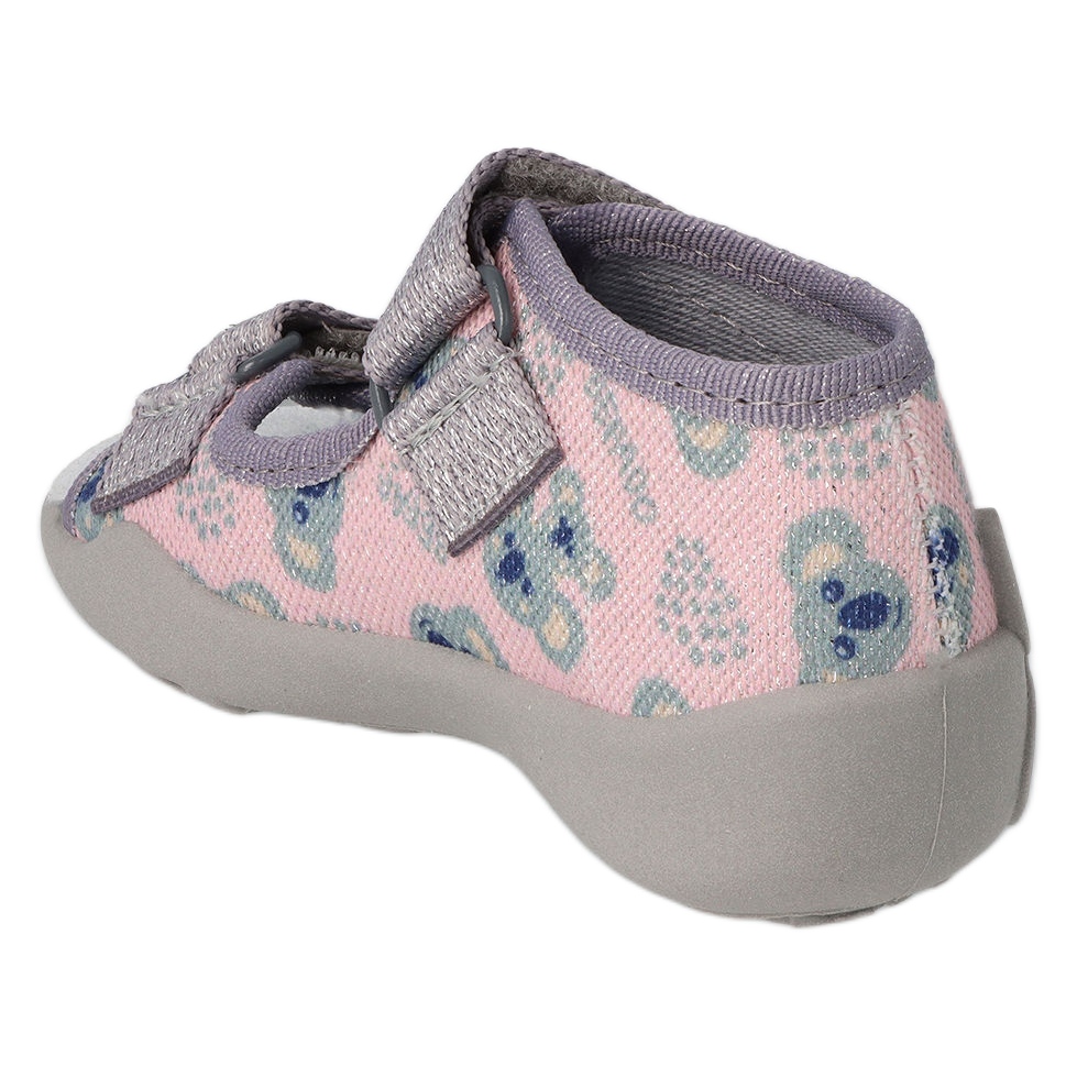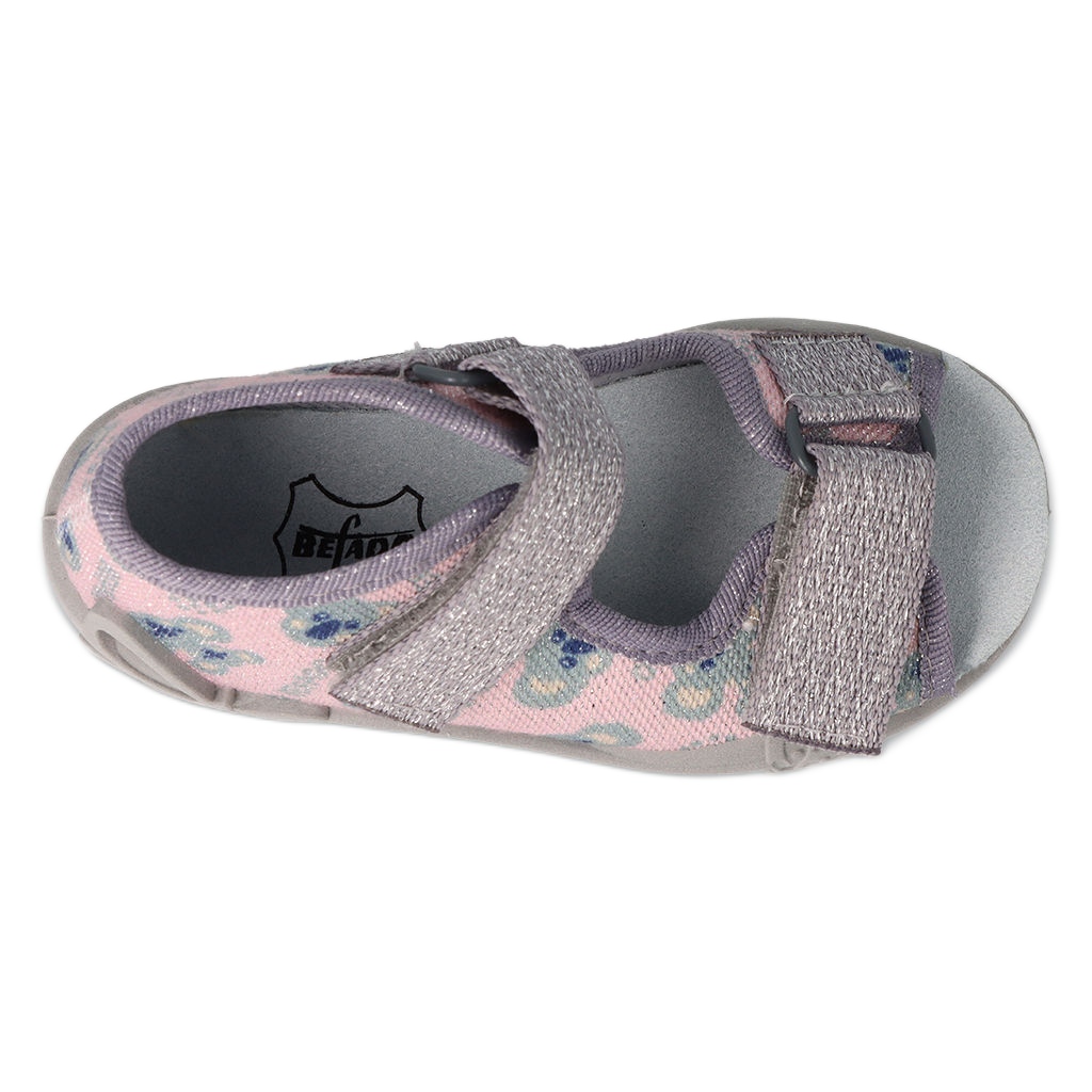 Comodidad y seguridad mientras juega en el jardín de infantes: así es como puede describir Befado 342P050. Los zapatos han sido diseñados para las necesidades de los pies pequeños: un talón rígido y lados estables mantienen la posición correcta del pie, y los dedos descubiertos proporcionan ventilación adicional. Las superiores están hechas de tela de algodón aireada, lo que aumenta la comodidad del uso, y el inserto de cuero cuida la higiene y la comodidad. Un sistema de fijación de cierre adhesivo simple permite al niño ponerse y coincidir con el calzado de forma independiente.