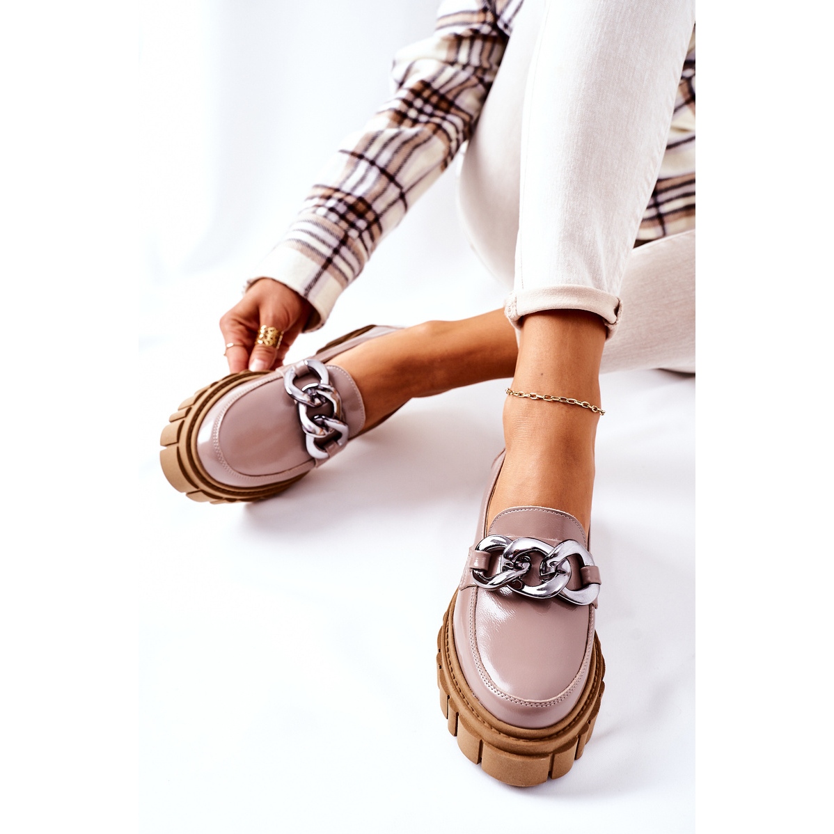 Estos zapatos se distinguen por un elegante acabado charol que complementará perfectamente muchos estilos, desde el informal hasta el más formal. Gracias a la suela alta y al tacón plano de 6 cm, este modelo no sólo queda fenomenal en la pierna, sino que también alarga ópticamente la figura. La nariz redonda les aporta un carácter clásico, y el llamativo detalle en forma de cadena les aporta un estilo único.