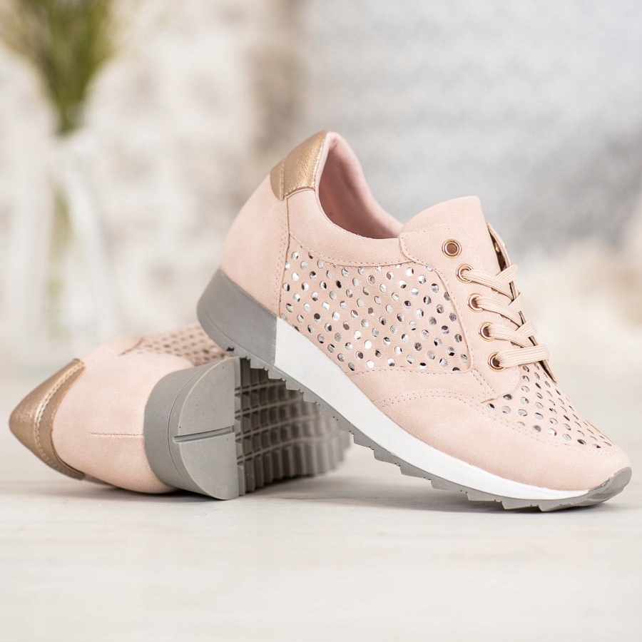 Descubre moda y comodidad al mismo tiempo gracias a los zapatos de plataforma calados de Kylie en un encantador color rosa claro. Estos zapatos textiles de mujer son la elección perfecta para la primavera y el verano, ya que combinan un estilo casual con un aire deportivo. La parte superior calada, llena de agujeros decorativos, no sólo llama la atención, sino que también proporciona una excelente ventilación, una opción ideal para los días cálidos.