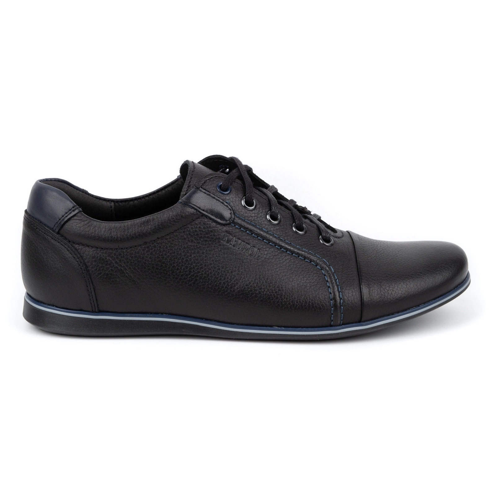 Kampol 39/5kam es zapatos de cuero sólidos en un color negro universal, elegante, cómodo y duradero. Una excelente opción para los hombres que valoran los clásicos y la comodidad en el uso diario.