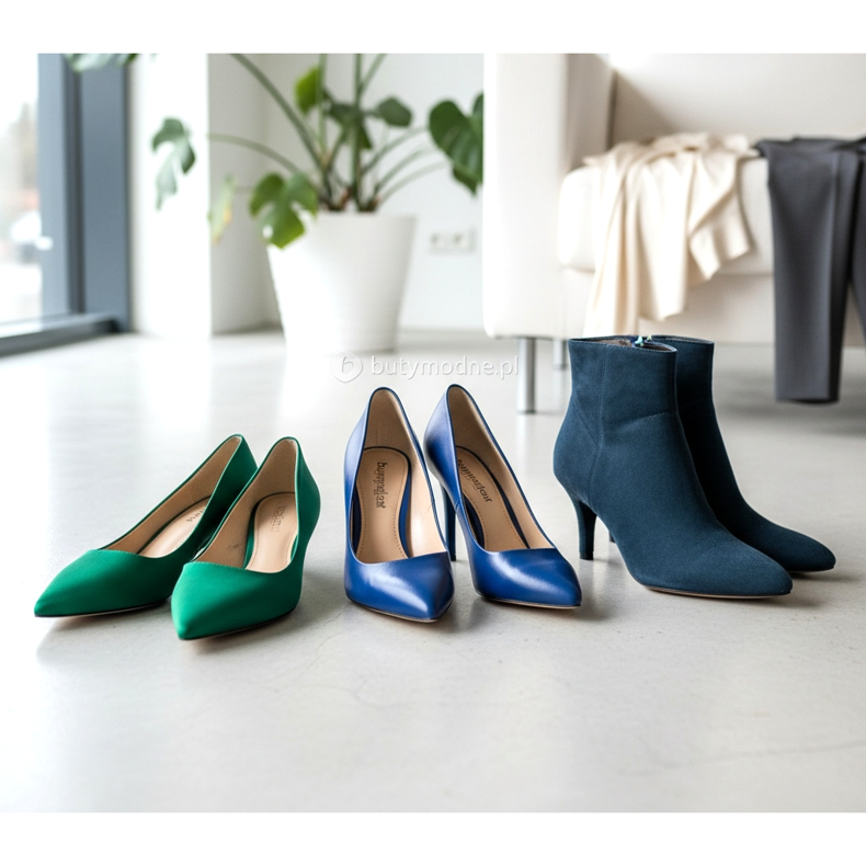 La hierba esmeralda tiene algo misterioso y sofisticado. En el calzado, queda excepcionalmente bien en formas elegantes: zapatos de tacón, sandalias de tacón o botines. Los zapatos de tacón esmeralda con un minivestido negro son una combinación clásica que siempre llama la atención.